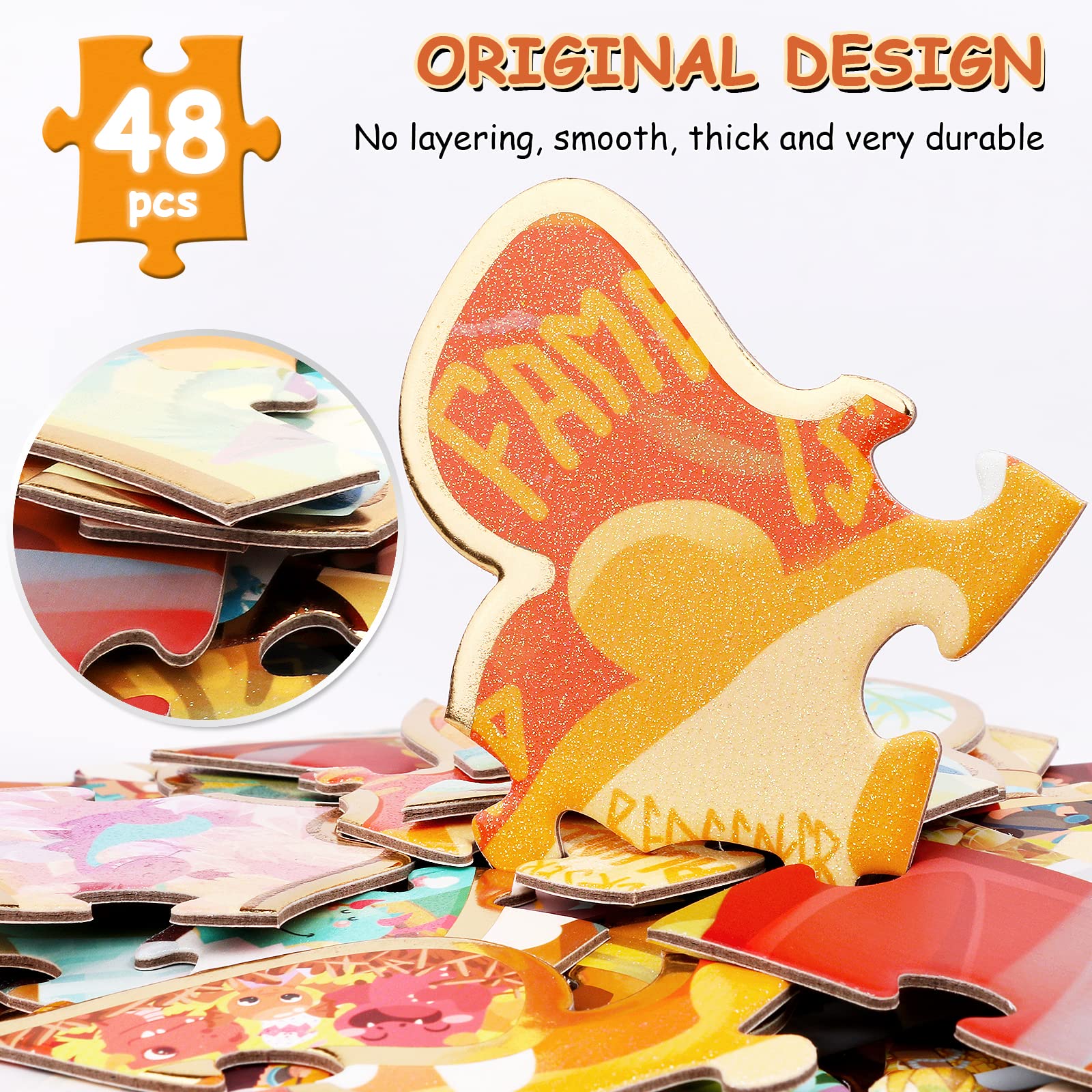 Has Floor Puzzles For Kids Ages 4-8, Fire-Breathing Dragon Shape Double-Sided Puzzle, 48 Piece Large Children Jigsaw Puzzle For