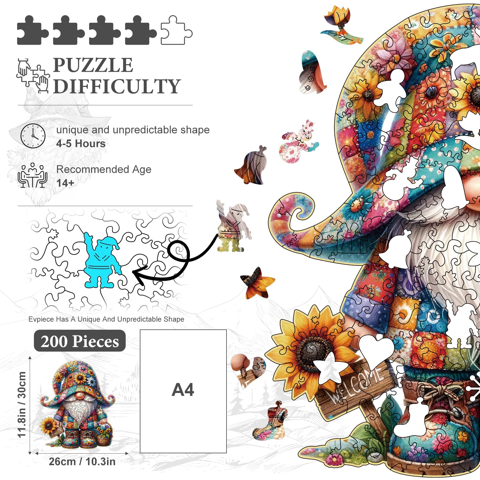 Hlison Wooden Jigsaw Puzzles, Gnome Wooden Puzzles For Adults With Unique Shape, Medium 10.3''X11.8'' Wooden Puzzles With Exquis