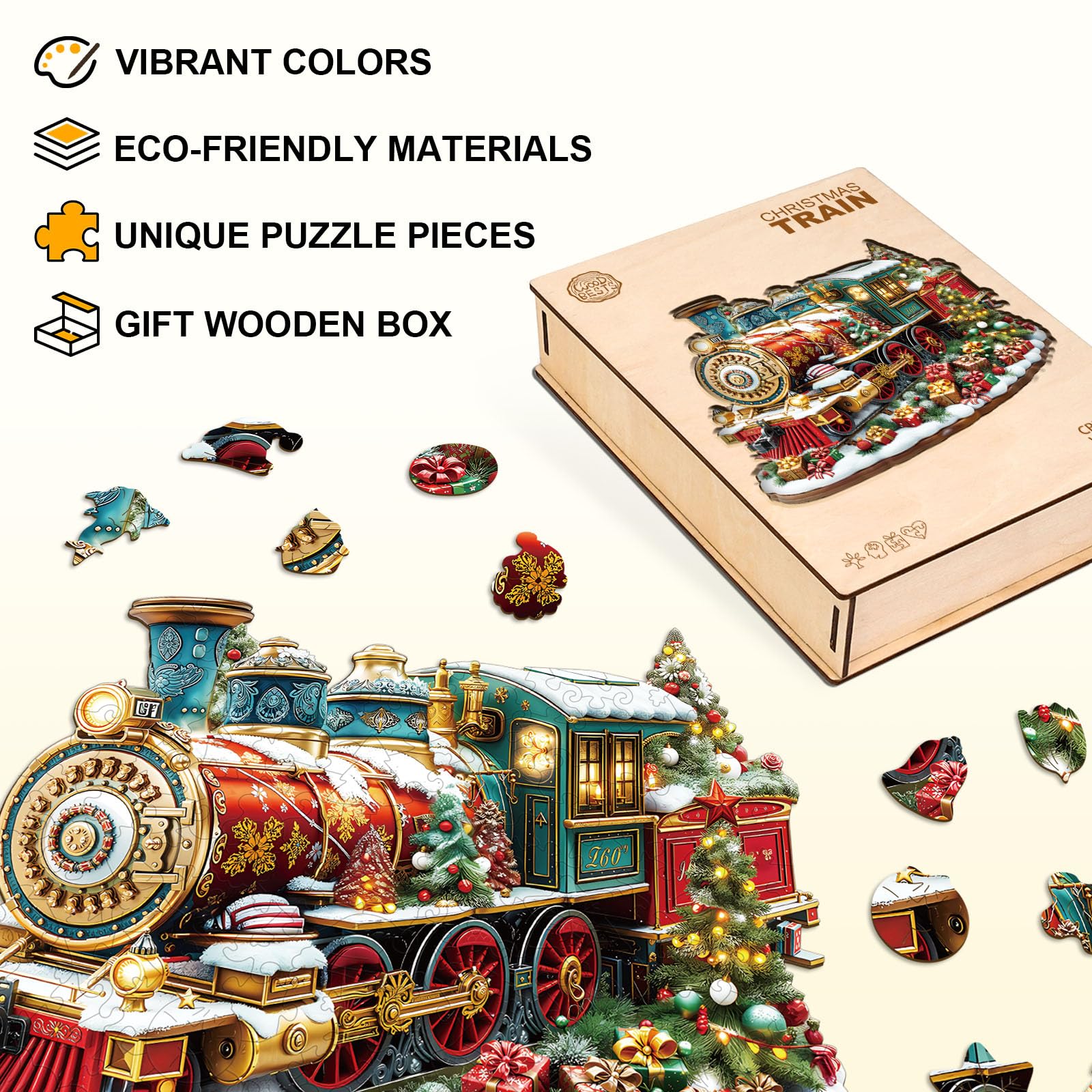 Jigfoxy Wooden Puzzles for mature-themeds Christmas Train Wood Puzzles mature-themed Unique Animal Shape Wooden Jigsaw Puzzles for mature-themeds Birthday Gifts for Puzzle Lovers Family Friend (M-11.4 * 9.3in-175pcs)