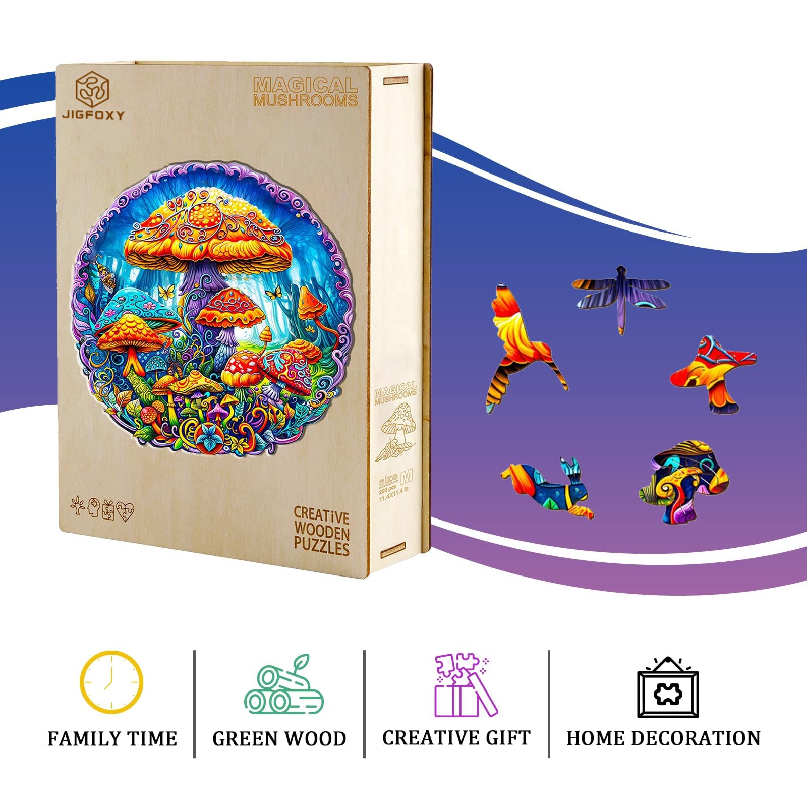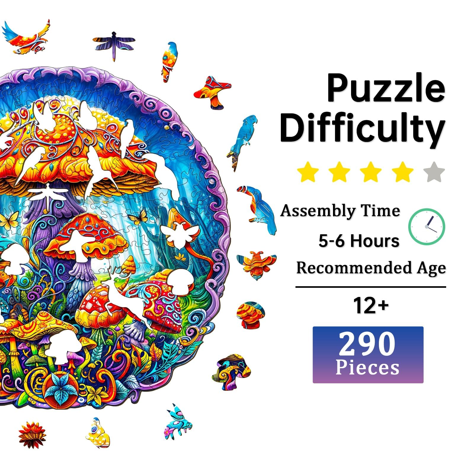 Jigfoxy Wooden Puzzles for mature-themeds Magical Mushrooms Wood Puzzles mature-themed Unique Animal Shape Wooden Jigsaw Puzzles Birthday Gifts for Puzzles Lovers Family Friend (L-13.3 * 13.3in-290pcs)