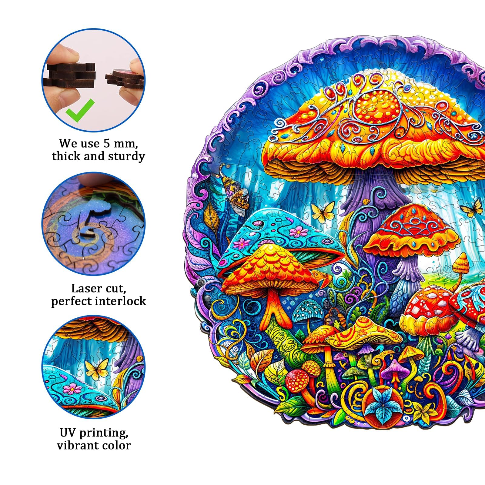 Jigfoxy Wooden Puzzles for mature-themeds Magical Mushrooms Wood Puzzles mature-themed Unique Animal Shape Wooden Jigsaw Puzzles Birthday Gifts for Puzzles Lovers Family Friend (S-8.4 * 8.4in-100pcs)
