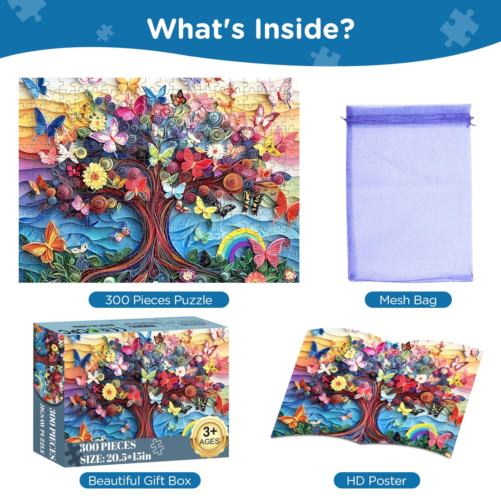 Jigsaw Puzzles 300 Pieces for mature-themeds Butterfly Puzzle 300 Piece Puzzle for mature-themeds Recycled Cardboard Puzzles for mature-themeds Kids Tree Jigsaw Puzzle Games Family Activity Great Gift 20.5x15 in
