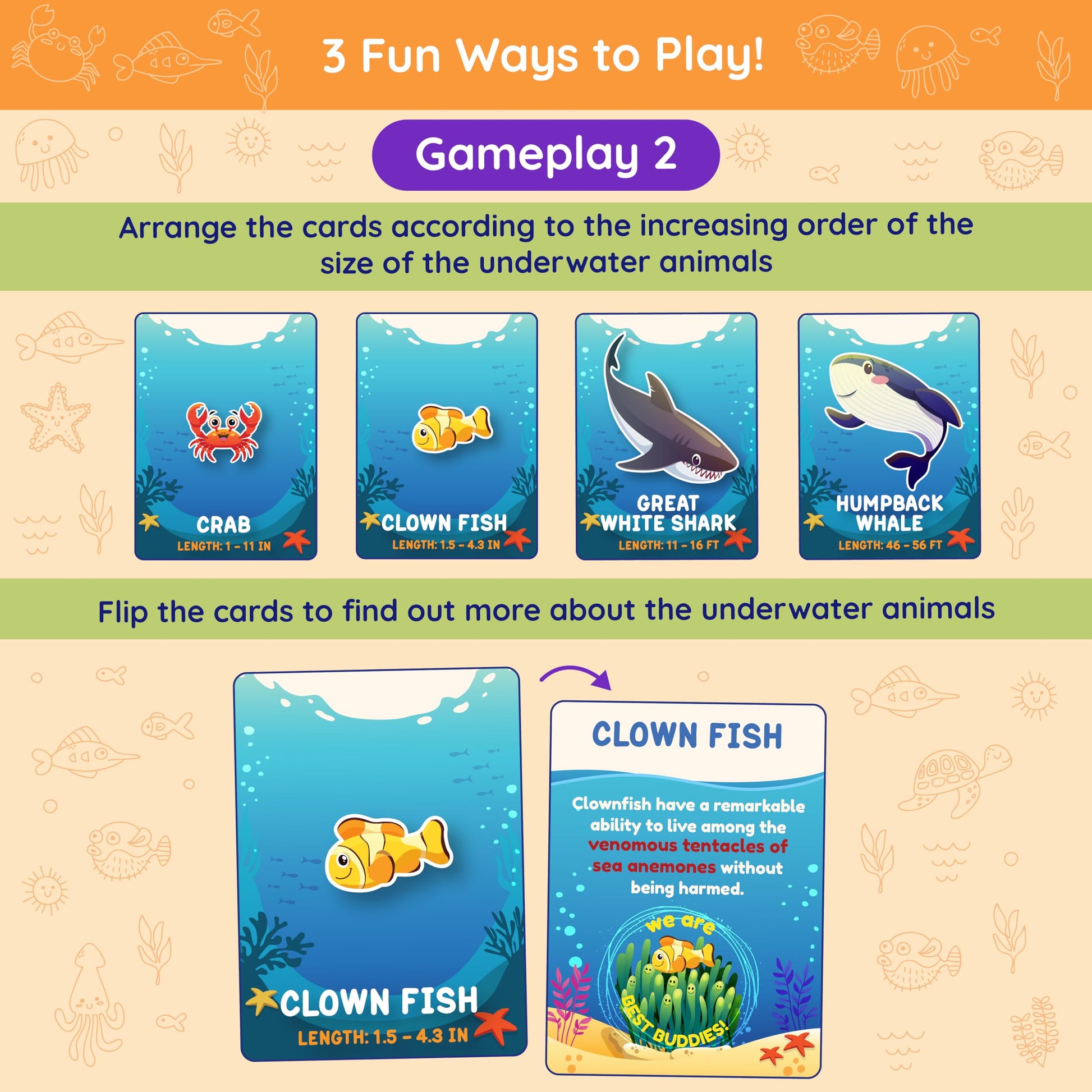 A fun way for young explorers to learn about our amazing Underwater World through a large and colorful Floor Puzzle, along with educational game cards and 3D figures to unleash their imagination