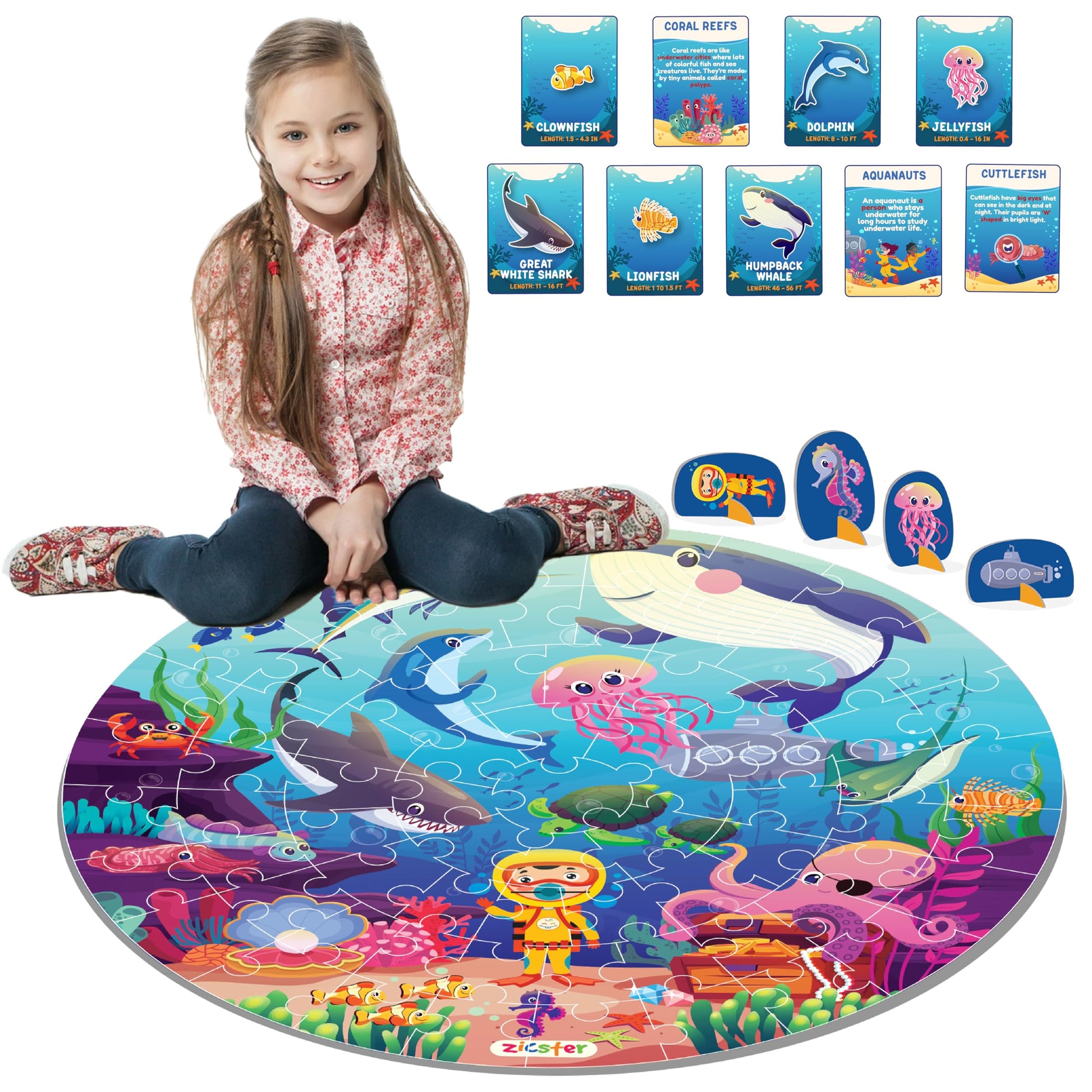 View compareJumbo 70 Piece Round Floor Puzzles For Kids Ages 3-5, 6-8, Large Jigsaw Puzzle About Underwater Animals Oceans Sea Creatures, 20