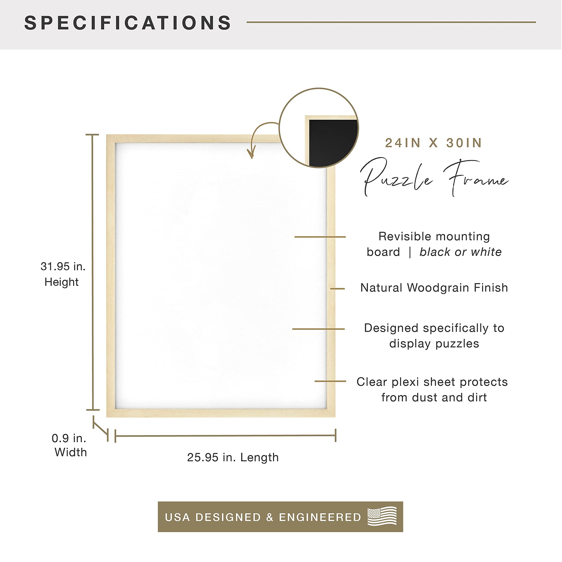 These Frames Were Designed Specifically To Preserve And Display Your Puzzles. The Wide Transitional Frame Molding In A Natural Woodgrain Finish Is An Elegant Way To Display Your Hard Work. Included With The Frame Is A 2-Sided Sheet Of Cover Stock (Black On One Side, White On The Other) Which Can Be Used As A Background For Your Puzzle. This Puzzle Frame Is Easy To Load And Easy To Hang.