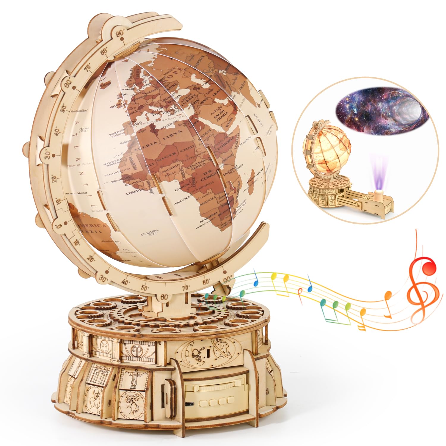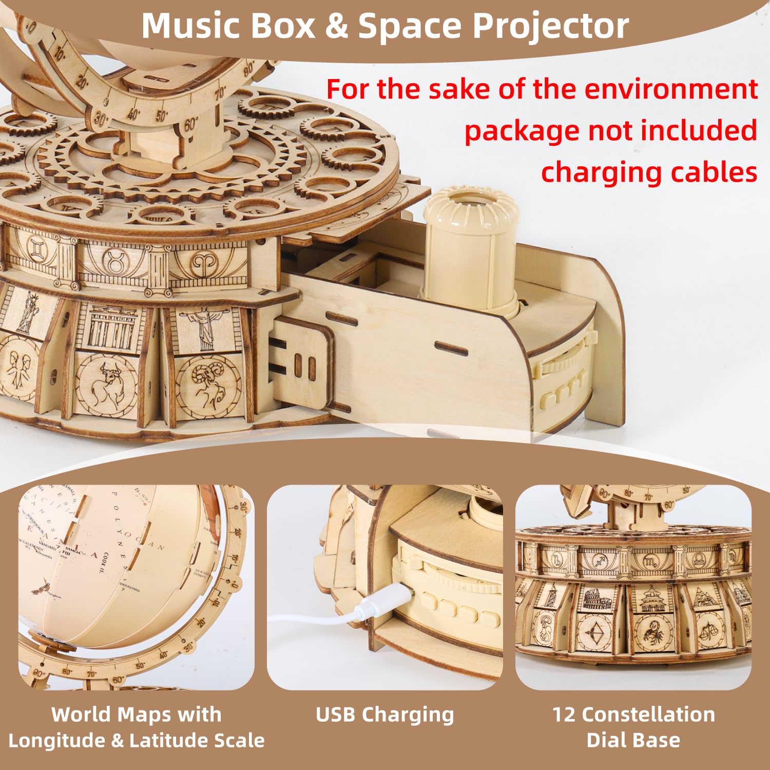 Miebely 3D Wooden Puzzles For Adults Usb Charging Illuminated Globe Music Box Diy Led Wood Model Building Kits With Space Projec