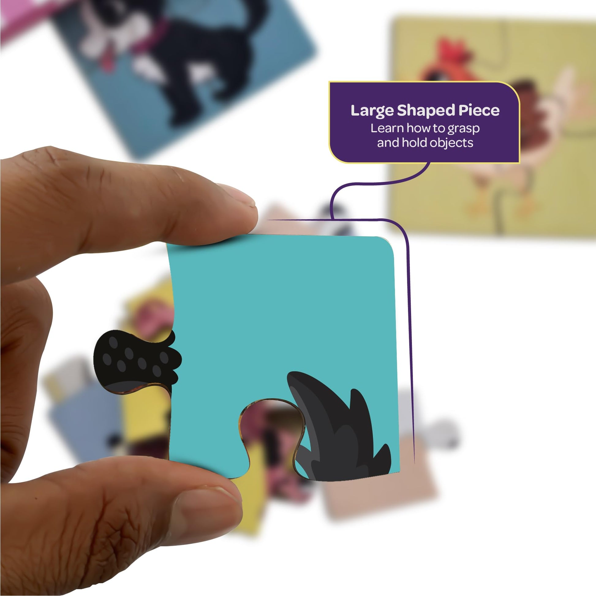 Product Inside: 6 Wooden Animals (Hen, Sheep, Dog, Duck, Cow, Pig) Puzzles Sets, Total 24 Wooden Pieces.
