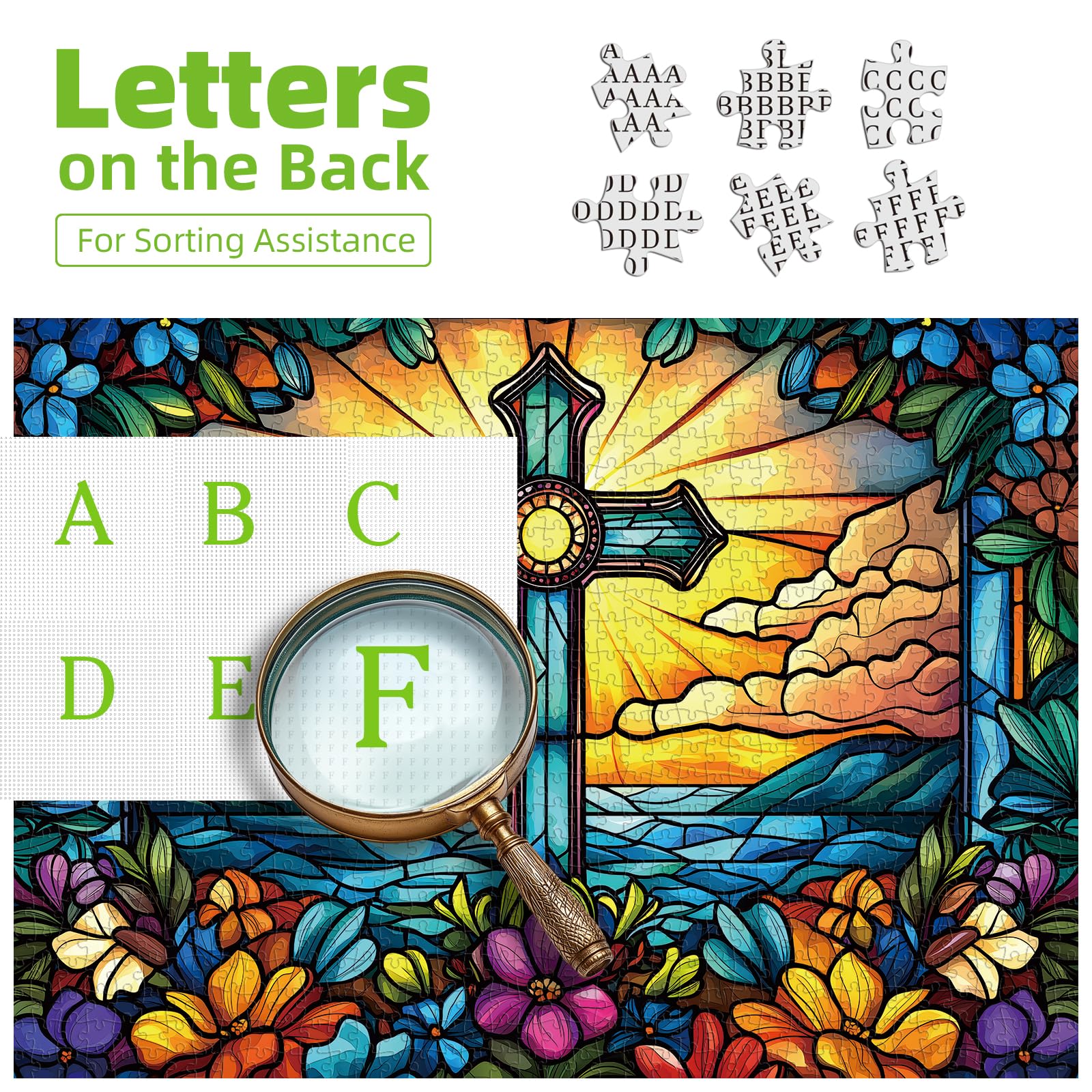 Miniwan - Stained Glass Cross Puzzles For Adults 1000 Pieces, Impossible Hard Difficult Challenging Puzzles For Adults, Colorful