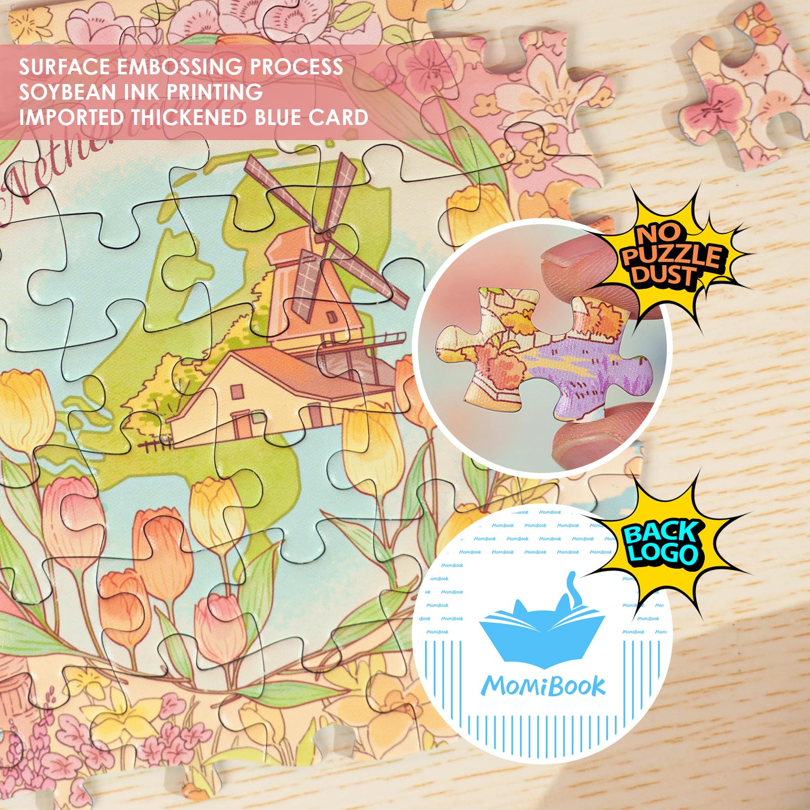 Momibook Puzzles For Adults 1300 Piece Jigsaw Puzzles Of Flower Great Universal Guide, Painting Image World Map Challenging Hard