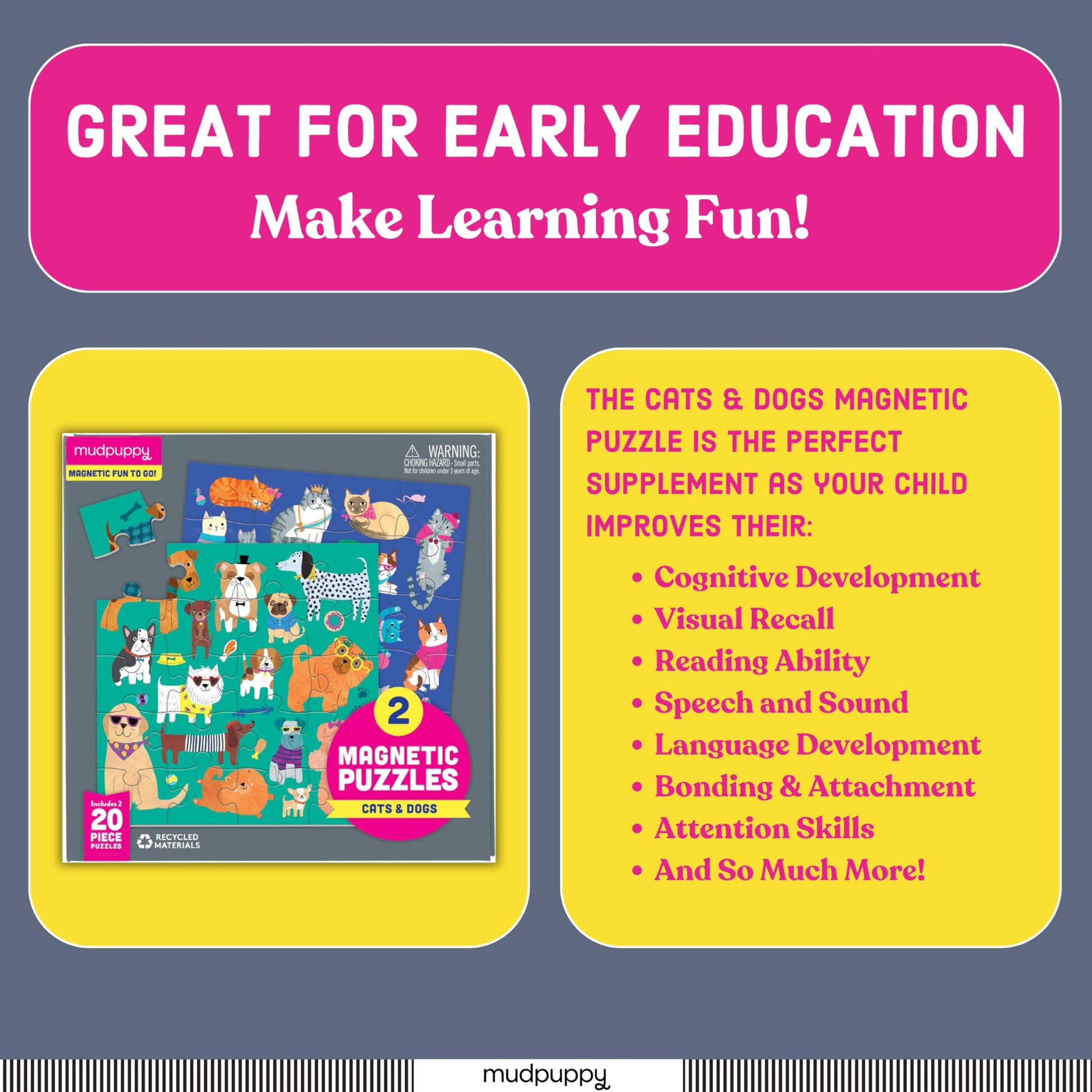 Part Of Mudpuppy To Go Series, Cats & Dogs Magnetic Puzzles Provide Children With A Fun And Easy Way To Puzzle On The Go! The Portable Tri-Fold Portfolio Package Includes 2 Puzzles, Each With 20 Magnetic Puzzle Pieces. The Puzzle Pieces Stick To The Magnetized Portfolio So There'S No Slipping Or Lost Pieces. The Portfolio Also Includes An Extra Magnetic Surface In Case It'S Time To Pack Up Before The Puzzles Are Complete.