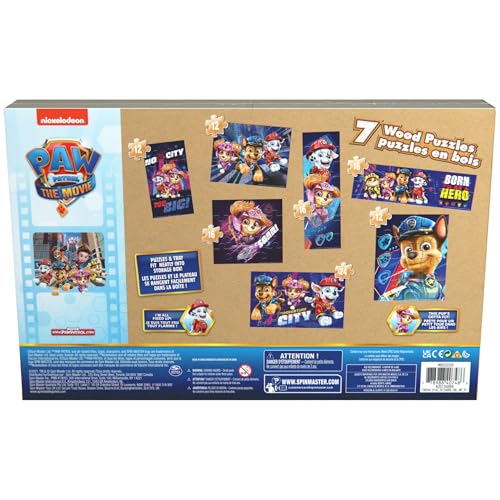 PAW Patrol: The Movie, 7 Wood Puzzles Jigsaw Bundle 12pc 16pc 24pc Chase Skye Marshall Rubble Show with Tray, for Kids Ages 4 an