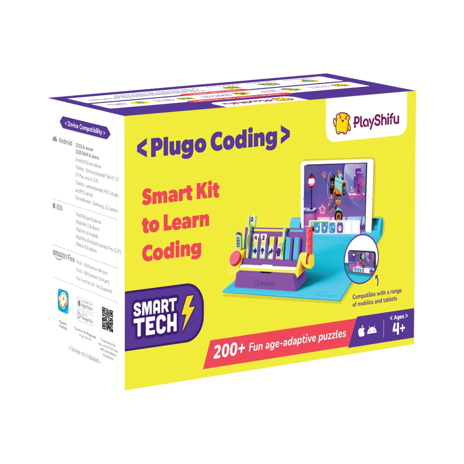 Plugo Coding By Playshifu : Perfect Coding Starter Kit For Kids, Teaching Programming Basics Through Fun Digital Games. This Stem Toy Uses Block-Based Coding With Interactive Tiles For Engaging Learning. | Early Stem Skills: Develop Problem-Solving And Reasoning With 3 Games And Over 200 Levels. Designed For Kids 4 To 10, It Offers Adaptive Challenges And Delightful Characters To Keep Children Motivated. | Smart Logic: Enhances Analytical Thinking As Kids Use Tiles To Create Code Blocks. The Games Boost Creativity And Logical Skills Through Puzzles And Obstacles, Encouraging Critical Thinking And Solution-Finding. | Coding Fundamentals: Introduces Coding Basics With A Simple Block-Based Method. Kids Build Skills By Forming Commands And Playing Through Educational Games, Learning Fundamental Programming Concepts. | What'S In The Box: Includes 33 Coding Tiles, 1 Coding Base, 1 Flash Drive, 1 Gamepad, And A Quick Start Guide. Download The Plugo App To Unlock 4 Games And 200+ Levels With Engaging Animations And Storytelling. | Device Compatibility: Compatible With Ios Devices (Ipad 5Th Gen & Above, Ipad Air, Ipad Pro, Ipad Mini 2 & Above, Iphone 6 & Above) And Android Devices With 3Gb Ram+. Amazon Fire Devices Are Not Supported. Device Not Included.