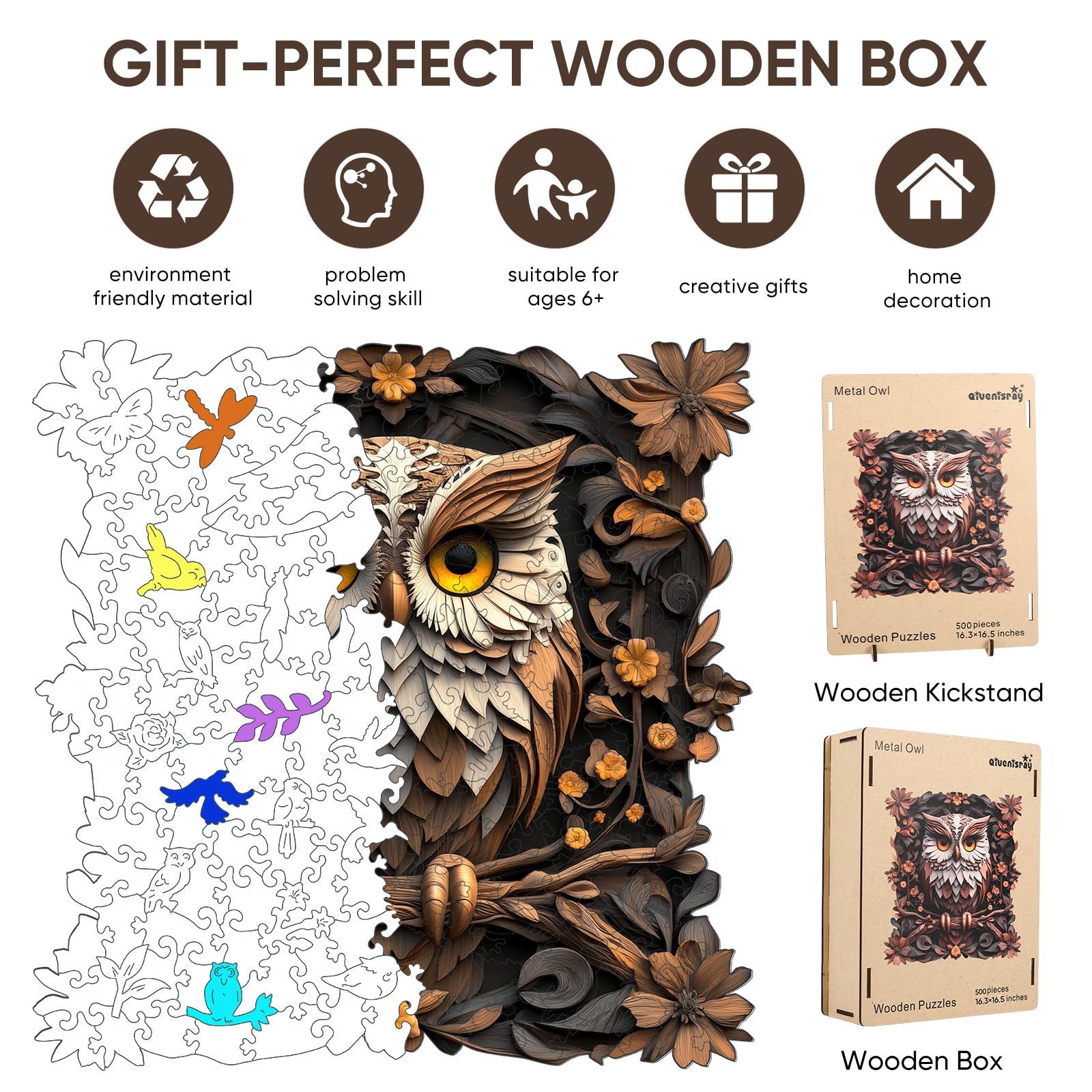 Qiuenisray Wooden Puzzles for mature-themeds 500 Pieces Metal Owl Jigsaw Puzzles Unique Shape mature-themed Puzzles Irregular Christmas Thanksgiving Gifts for Family Friend(16.5 x 16.3 in)