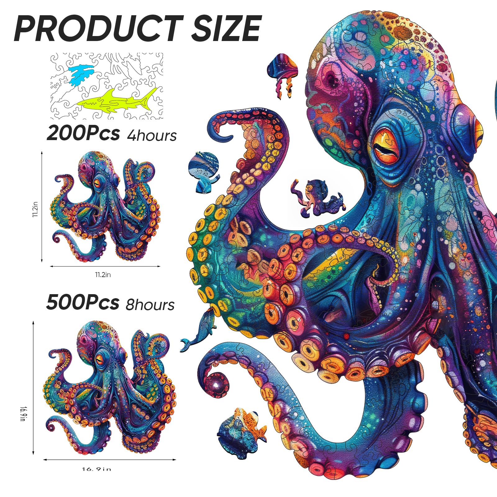 Qiuenisray Wooden Puzzles for mature-themeds Octopus Wooden Jigsaw Puzzles 500pcs 16.9x16.9in Royal Unique Shape Ocean mature-themed Puzzles Irregular Wood Puzzles Creative Gift for mature-themeds and Kids Family Game