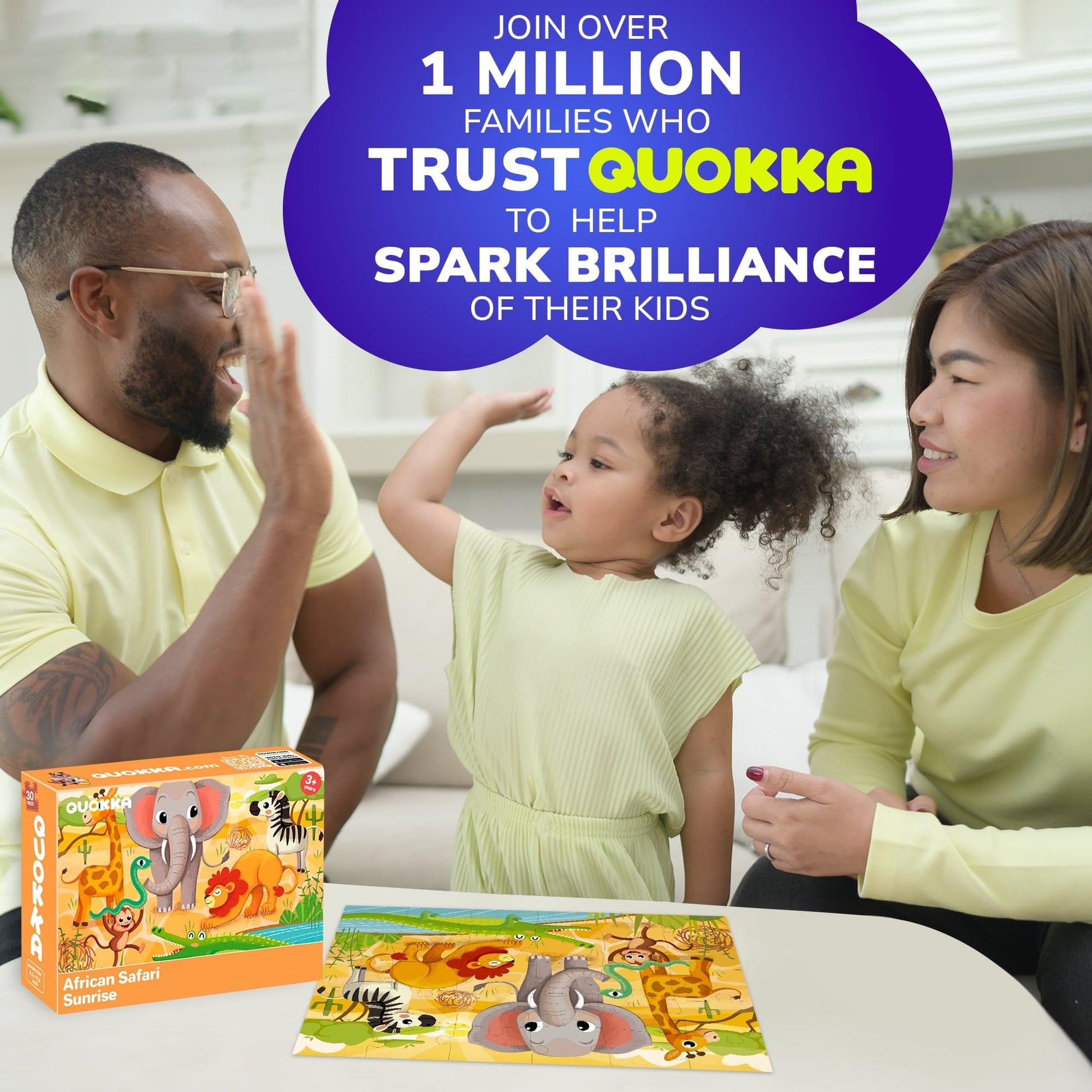 Giant floor Animals jigsaw puzzles for kids by QUOKKA are a perfect educational tool for preschoolers. Large floor puzzles for kids ages 4-8 are made of superior cardboard. Our kids puzzle for 3 year old. Childrens will be amazed by our toddler games ages 3-5 when learning about diverse Africa Animals. Unique images and vibrant colors will surprise your kids and make them fall in love with animals toys for kids ages 5-7. These children toys age 5-6 years old are great idea for moms, dads, grannies, and friends to spend time together. Thanks to kids games 3-5 you have fun with your kids and help them to develop problem solving skills and improove creative and logical thinking at the same time. Our preschool puzzles are fantastic for girls 5-7 for Birthday,Christmas gift,New Year and other holidays. With our floor toddler puzzles for kids ages 2-4 kids have a great time spending with all family memebers or friends.