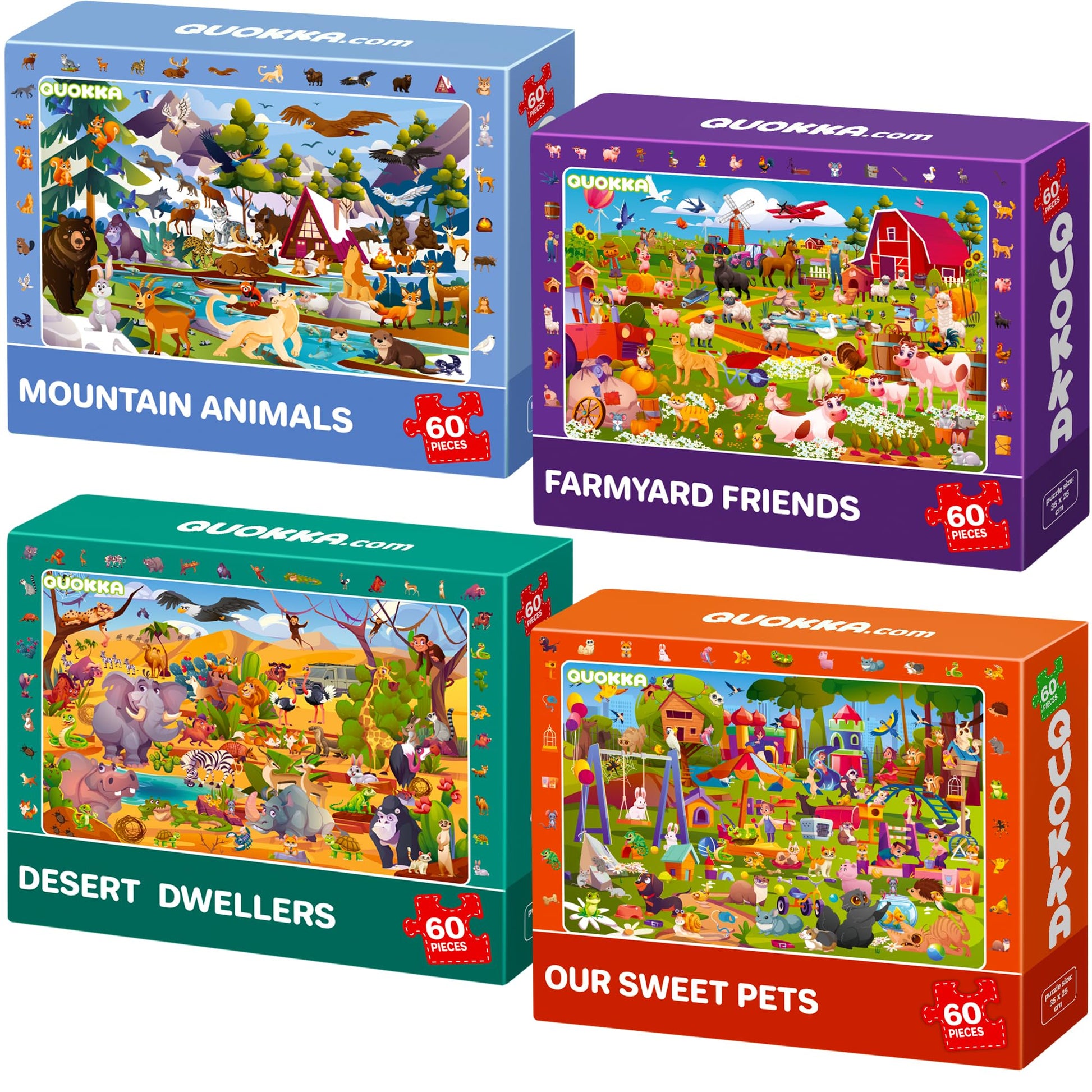 - Q: How many puzzles are included in the QUOKKA Puzzles pack? A: The QUOKKA Puzzles pack includes four unique 60-piece puzzles featuring various animal themes, which helps enhance learning and problem-solving skills through fun play.