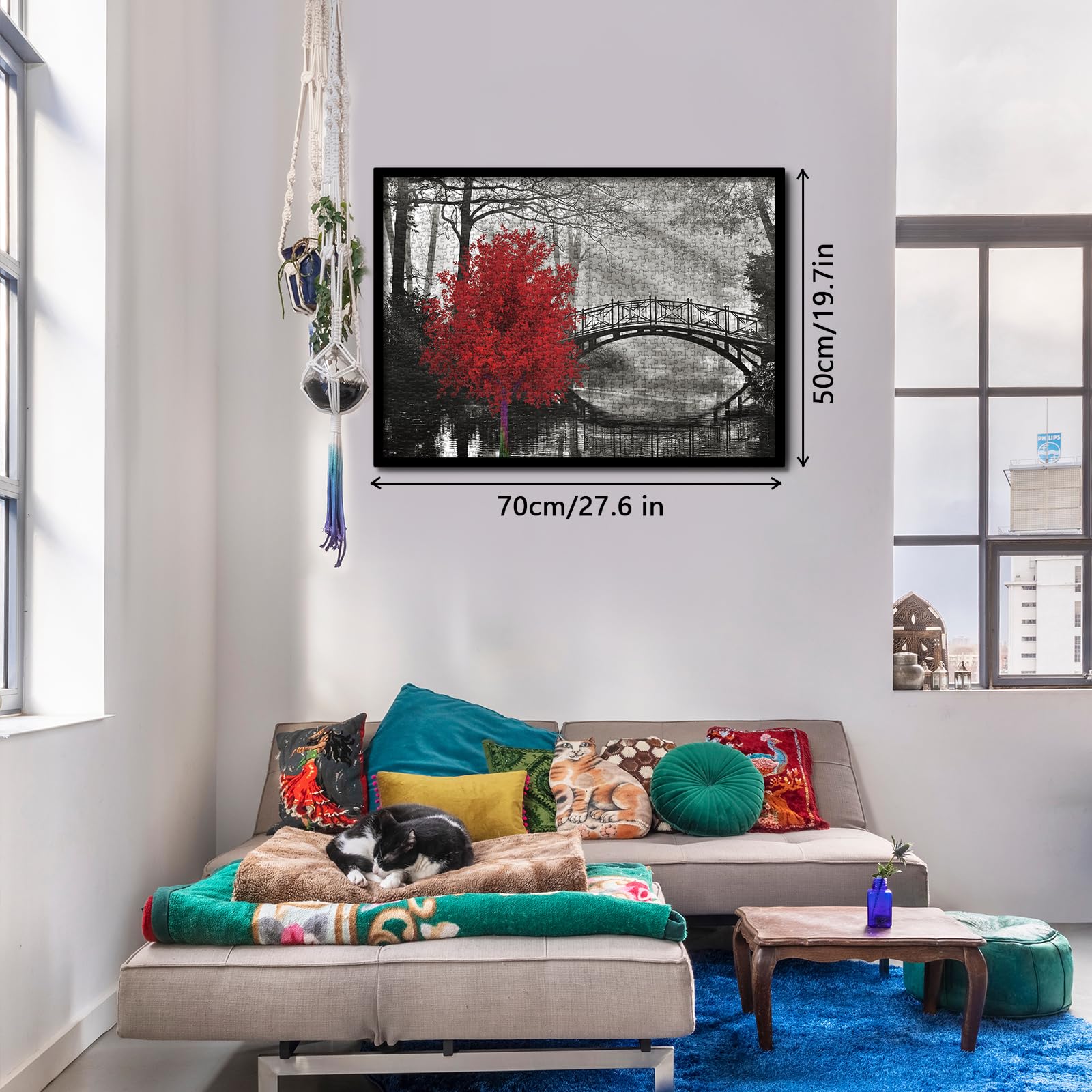 Scarlet Solitude Classic Puzzles For Adults 1000 Pieces, Black And White Bridge And Red Tree Jigsaw Puzzles, Wall Art Puzzles For Adults