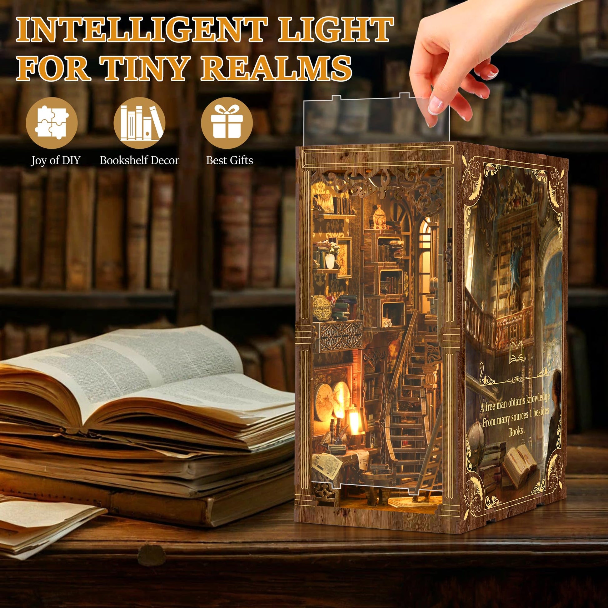View compareSunnino Book Nook Kit - Diy Miniature House Kit Doll House 3D Wooden Puzzles With Led Book Nook Kits For Adults Unique Gift For
