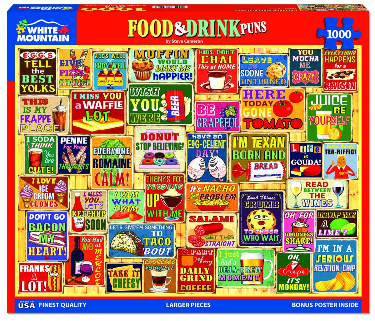 White Mountain Food & Drink 1000 Piece Jigsaw Puzzles Funny Pun Collage Puzzle For Adults And Family