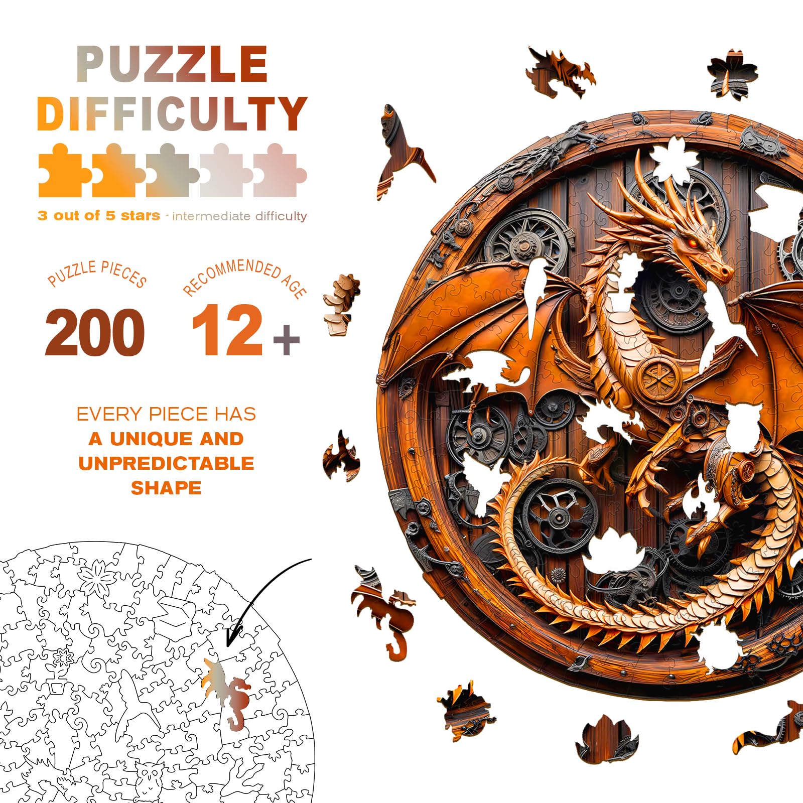 Wooden Dragon Puzzles - Unique Shaped Wooden Jigsaw Puzzles for Adults and Kids - Mechanical Dragon Wooden Puzzles - Creative Gift for Teenagers and Adults - Puzzle Toys - (200pcs)