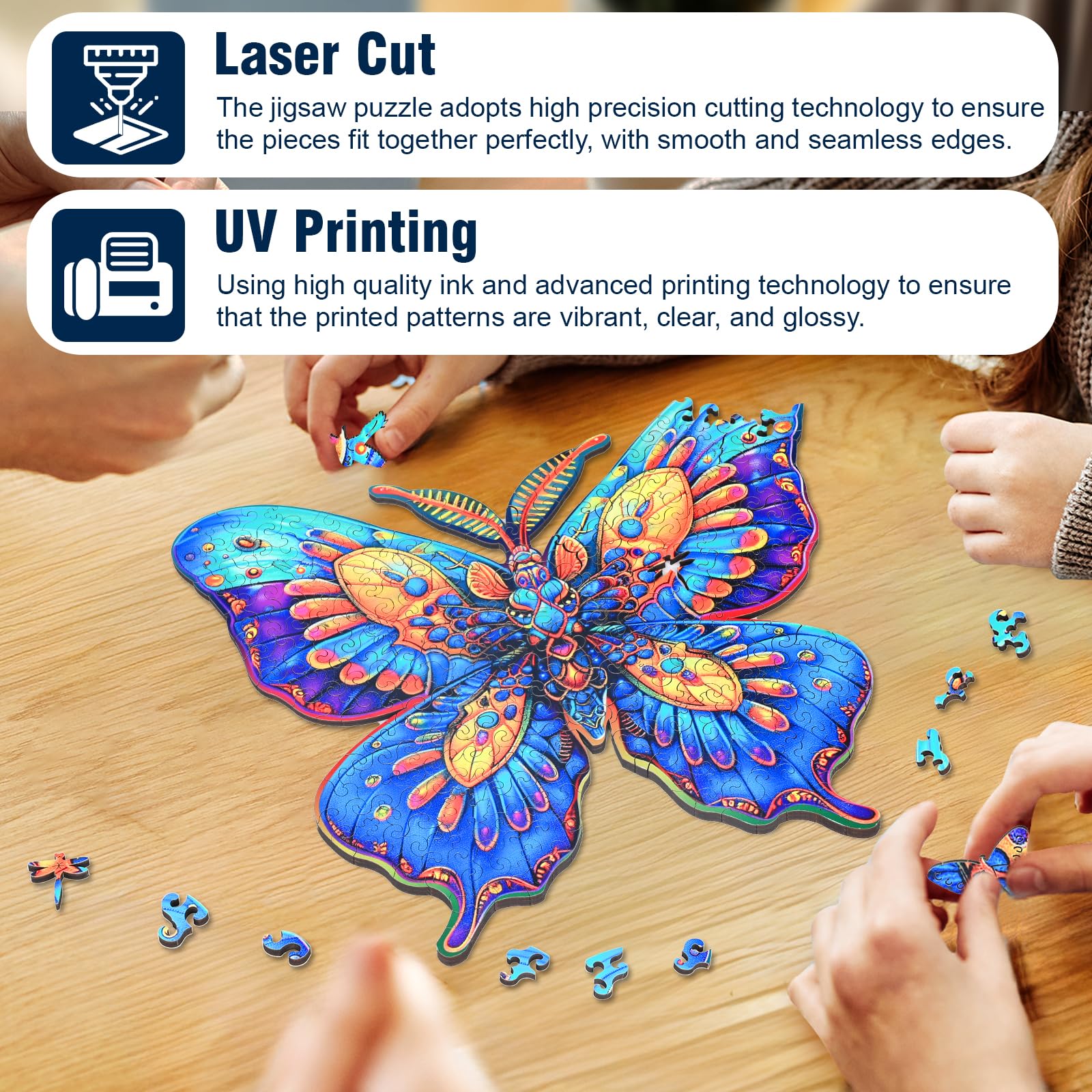 Wooden Puzzles for Adults, 300 Piece Butterfly Wooden Jigsaw Puzzles, Unique Puzzles with Beautiful Wooden Box, Challenging Puzz