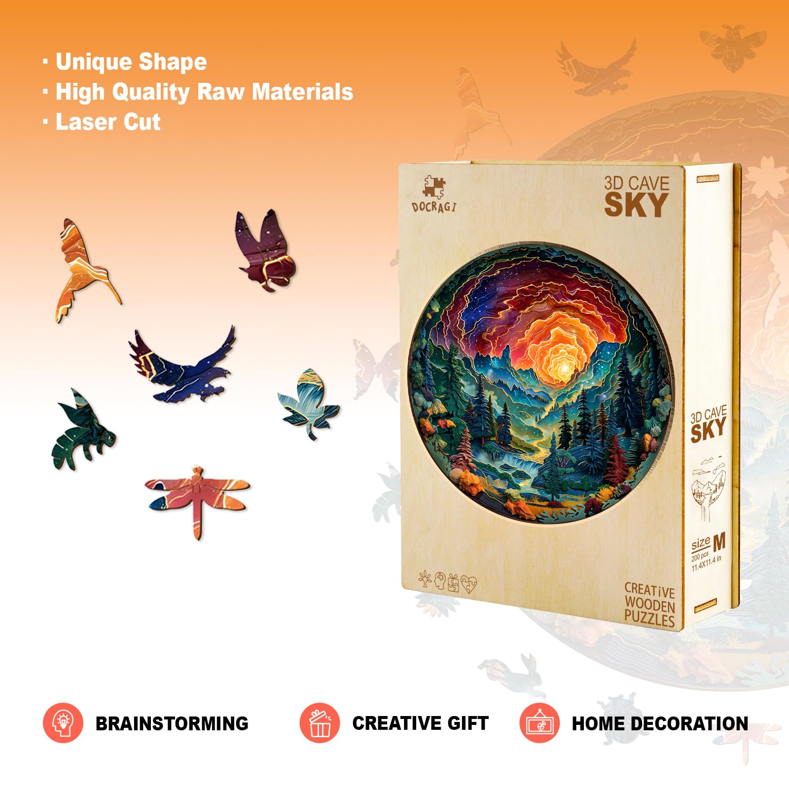 Wooden Puzzles For Adults - 3D Vision Effects Sky Wooden Jigsaw Puzzles - Unique Shaped Wooden Jigsaw Puzzles For Adults - Creat