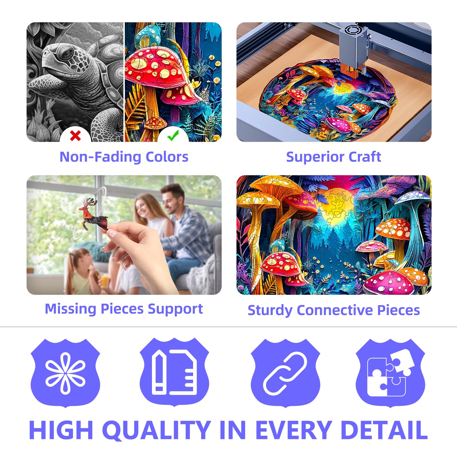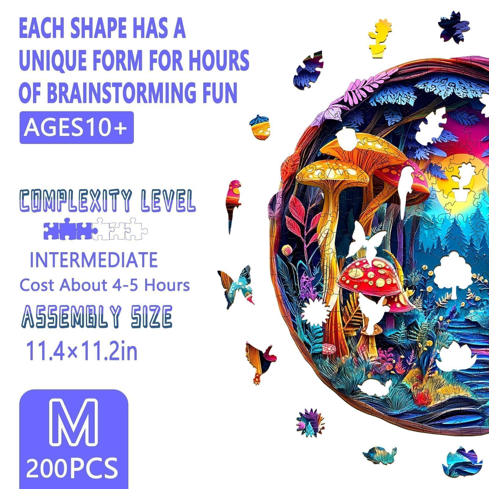 Wooden Puzzles For Adults -Mushroom Puzzle, Flat Puzzle With 3D Visual Effect, Unique Shape Wooden Jigsaw Puzzles, Paper Sculptu