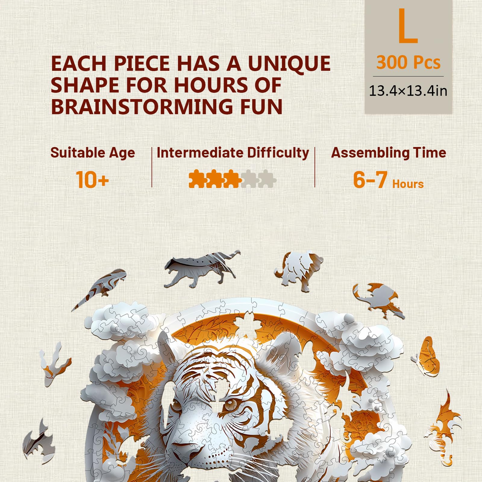Wooden Puzzles for mature-themeds 3D Visual Effect Paper Tiger Puzzle Wood Puzzles mature-themed Unique Animal Shape Paper Sculpture Modern Art Puzzle Gifts for Friend Canvas Wall Art (L-13.4 * 13.4in-300 pcs)