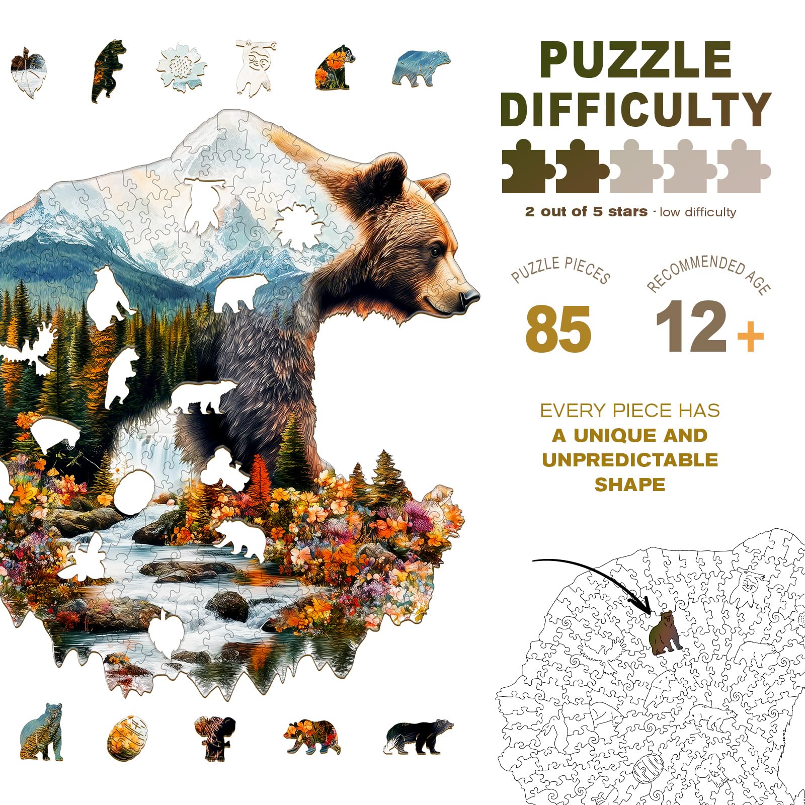 Wooden Puzzles for mature-themeds - Bear and Nature Wooden Jigsaw Puzzle - Unique Animal Shaped Wood Puzzles mature-themed - Christmas Birthday Gifts for mature-themeds/Friends/Family - 85pcs 8.4 * 8.5in