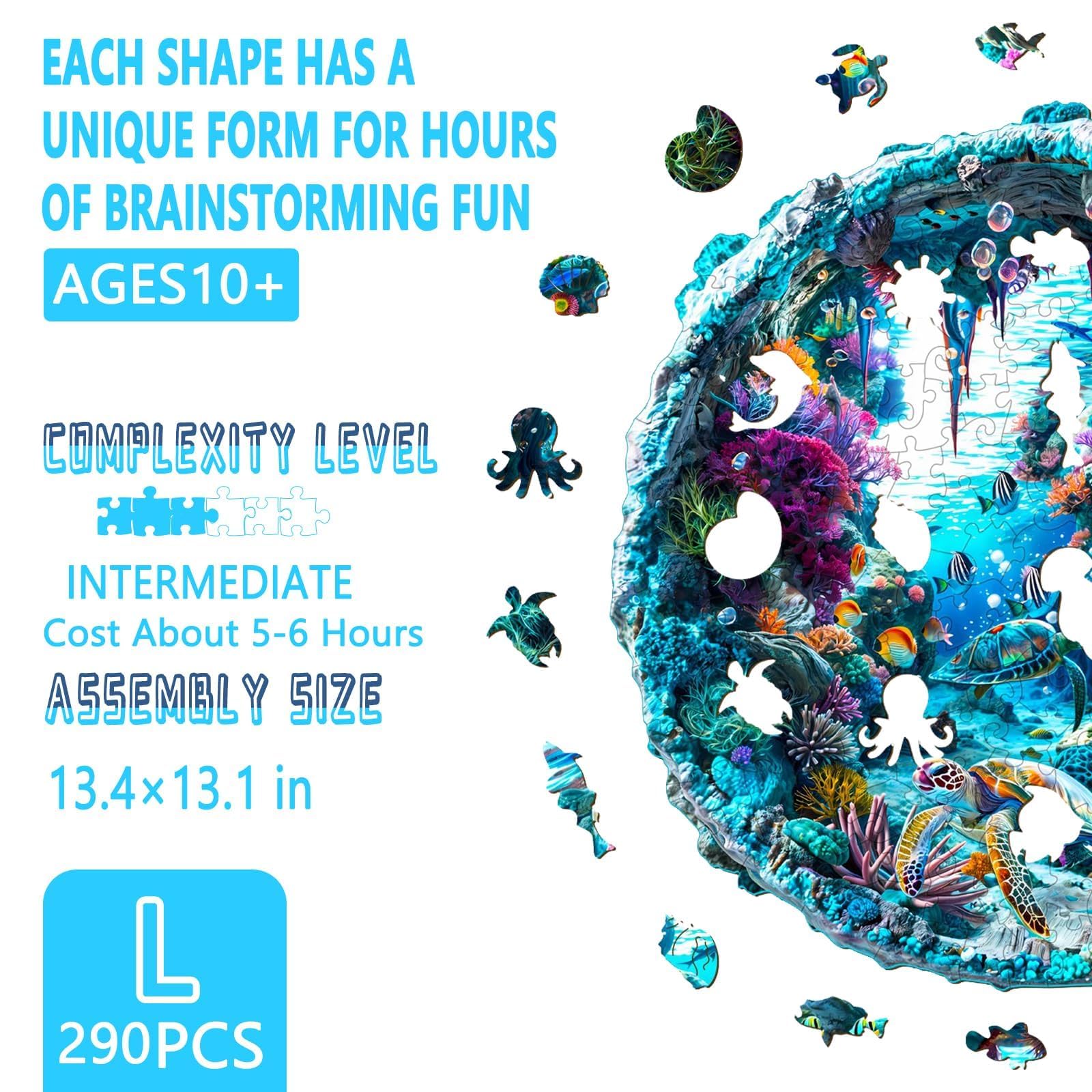 Wooden Puzzles for mature-themeds Flat Puzzle with 3D Visual Effect Seabed Wooden Jigsaw Puzzles for mature-themeds Sea Turtle Wood Puzzles mature-themed Unique Animal Shape Wall Art Canvas Puzzle (L-13.4*13.1in-290pcs)