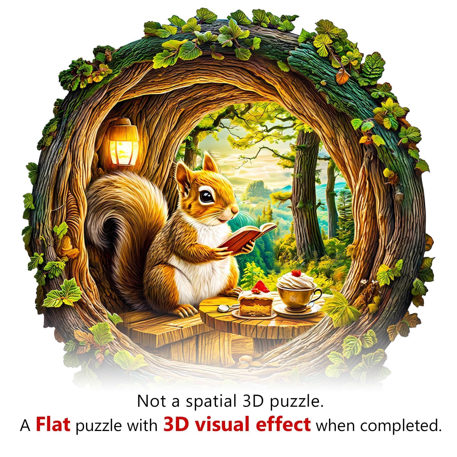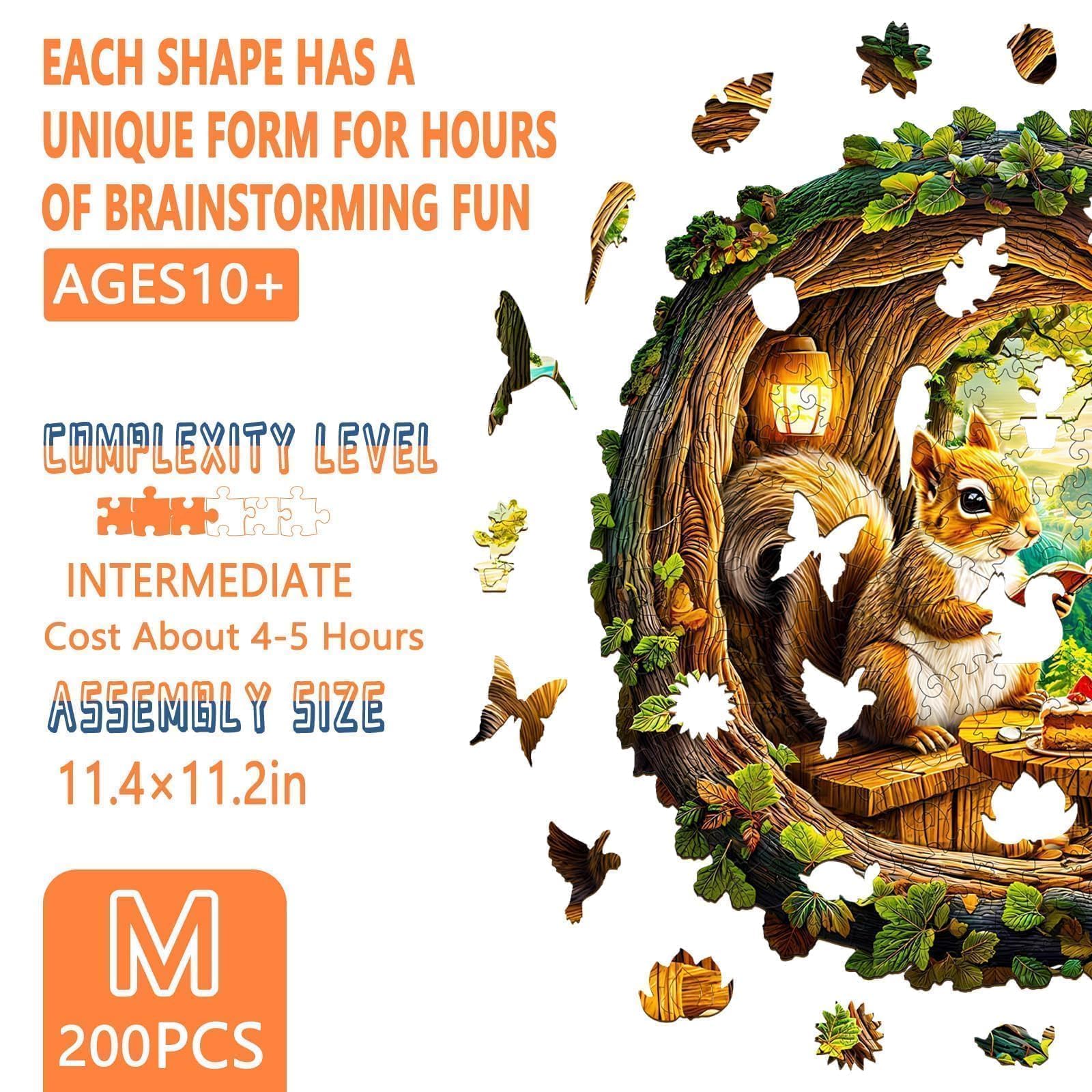 Wooden Puzzles for mature-themeds - Squirrel in The Cave Flat Jigsaw Puzzle with 3D Visual Effect Unique Shape Wood Puzzles mature-themed Good Gift Idea for Friend and Family (M-11.4 * 11.2in -200 Pieces)