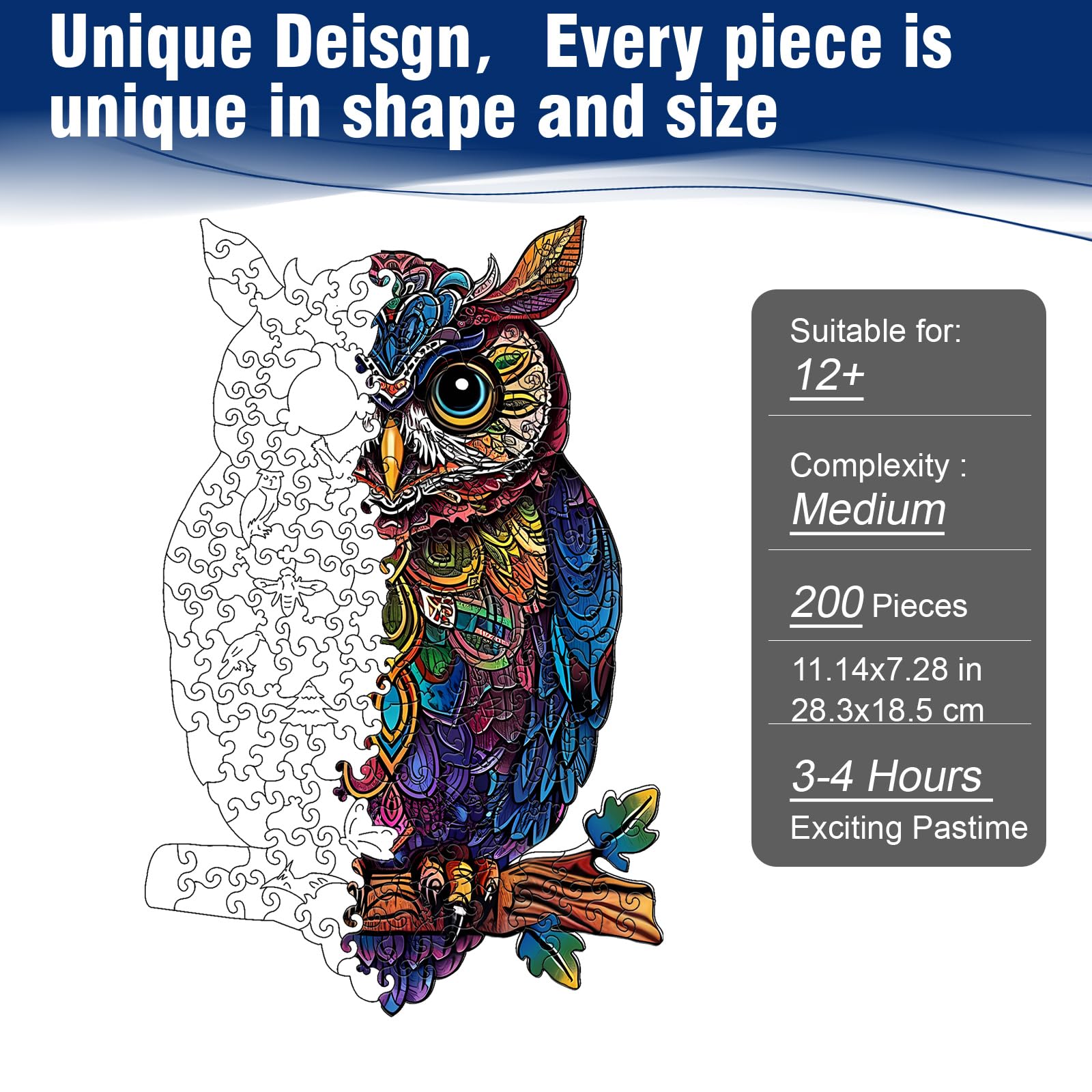 Wooden Puzzles for mature-themeds Unique Shaped Animal Jigsaw Puzzles Owl Wood Puzzles mature-themed Birthday Gifts for mature-themed and Kids 200 Piece 11.14?7.28