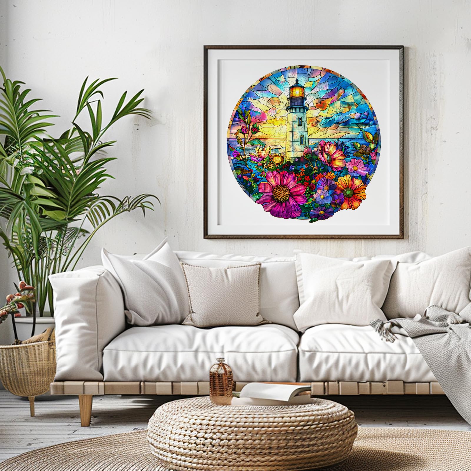 Wooden Puzzles for mature-themeds - Unique Shaped Wooden Jigsaw Puzzles mature-themed Puzzles Christmas Creative Gifts for mature-themeds Kids Stained Glass Lighthouse Wooden Puzzle 13.4 * 13.1in 300pcs