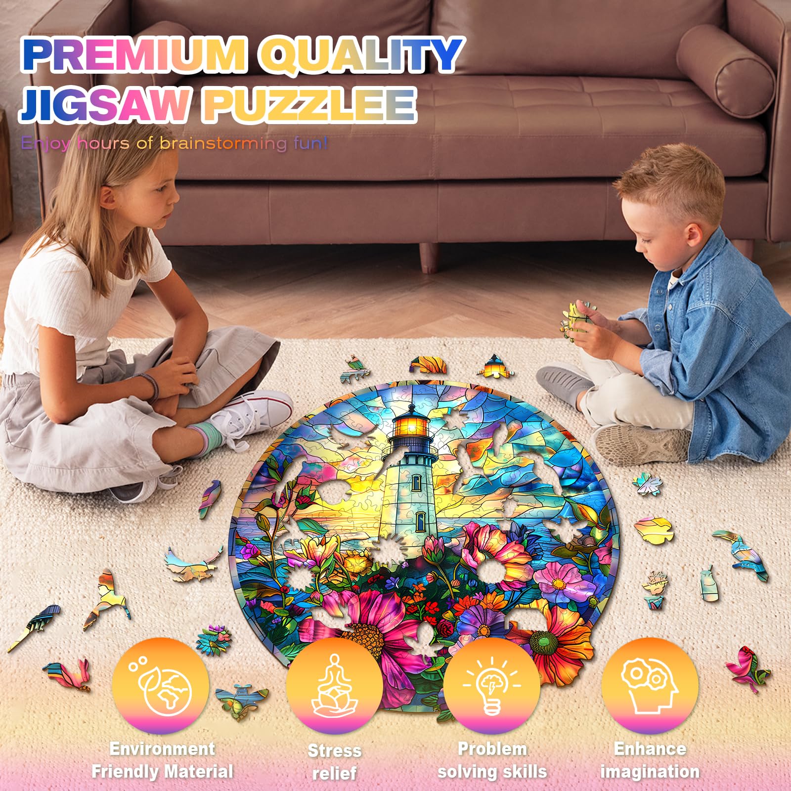 Wooden Puzzles for mature-themeds - Unique Shaped Wooden Jigsaw Puzzles mature-themed Puzzles Christmas Creative Gifts for mature-themeds Kids Stained Glass Lighthouse Wooden Puzzle 8.5 * 8.3in 100pcs