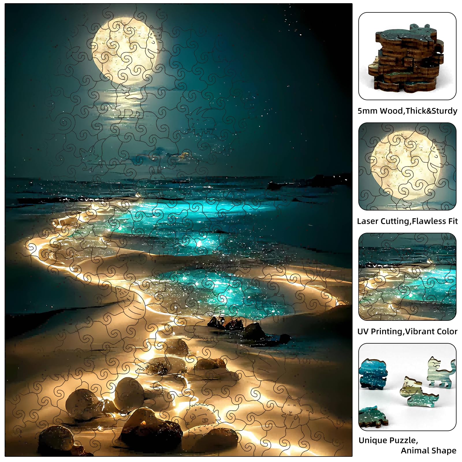 Why to choose our Moonlight Beach Wood Puzzle? 1. Unique animal shaped pieces make Quordle Puzzles more interesting. 2. The pieces are thick and solid in great quality. 3. The edges are smooth avoid scratching your hands. 4. The patterns are clear the colors are bright and fade-resistant. 5. The masterpiece can be used to decorate your wall when you are finished. Wooden Puzzle for mature-themeds Details: The Wooden Jigsaw Puzzle is suitable for both mature-themeds and teens. It is a difficult impossible challenging puzzle that will give you an immense sense of accomplishment when you finish it. Finished size: 11.2 x 15.1 inches Number of Pieces: 270 Pieces Size of wooden box: 5.7 x 7.7 x 2.6 inches Features of Wood Jigsaw Puzzles mature-themed 1. Thinking Exercise: Cool funny unique puzzles for mature-themeds that improve memory and imagination develop patience and concentration. 2. Wall Decoration: Wooden Jigsaw Puzzle can be used as a game and decoration. When finished they can be used to decorate the walls of the dorm bedroom and living room offering a strong sense of achievement and artistic appreciation. 3. Gathering Happy Time: Our wooden jigsaw puzzle serves as a happy family or friends gathering game increasing the relationship between family or friends. 4. Ideal Wonderful Gift: Are you looking for a fantastic birthday or holiday gift? This wooden puzzle comes with a beautiful box and could be at the top of your list!