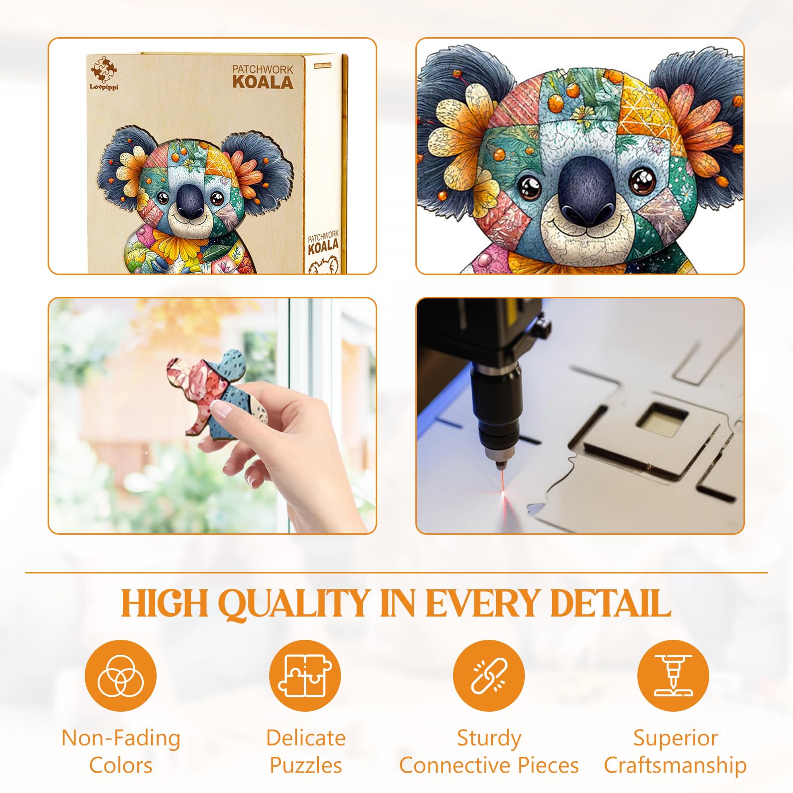 Wooden Puzzles for mature-themeds Wooden Jigsaw Puzzles for mature-themeds Kids Patchwork Koala Unique Shaped Wood Puzzles mature-themed Creative Birthday Gifts for Friends Family Game (8.5 * 8.1in 100pcs)