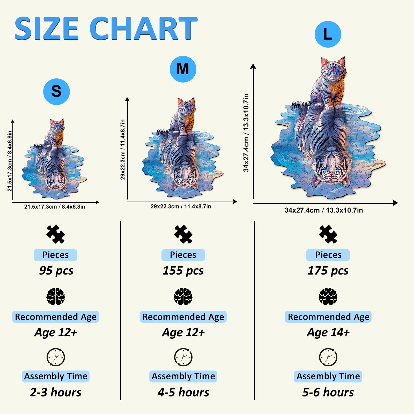 Wudhank Wooden Puzzles for mature-themed Cat Tiger Wooden Jigsaw Puzzles Unique Shape Wooden Jigsaw Puzzle Best Gift for Family Game (M-11.4 * 8.7in-155pcs)