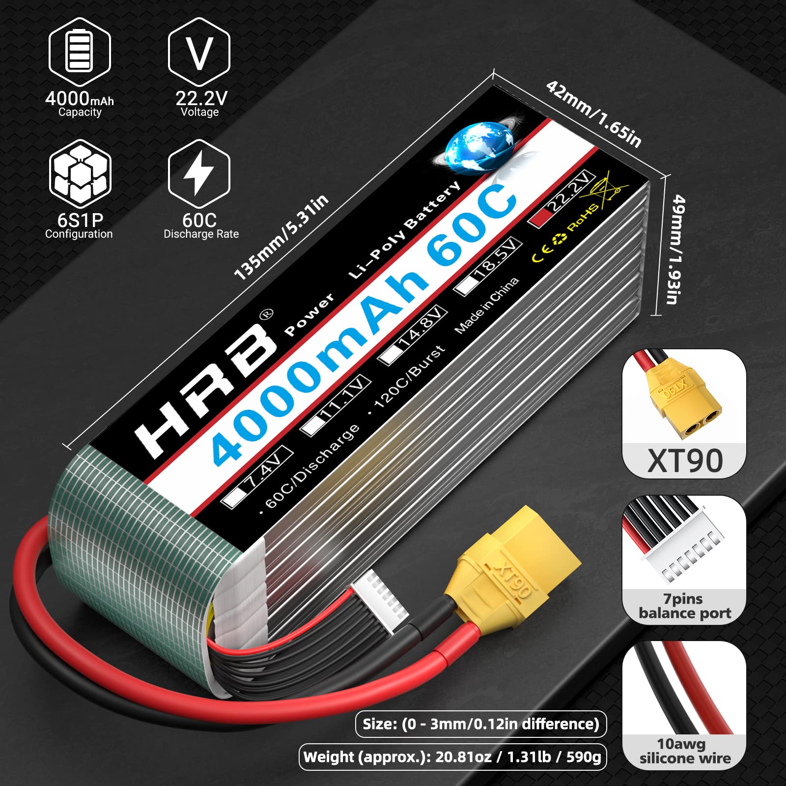 View compareHRB 6S Lipo Battery XT90 4000mAh 60C Soft Case 22.2V RC Lipo Battery for RC Quadcopter Helicopter Car Truck Boat Hobby (2packs)