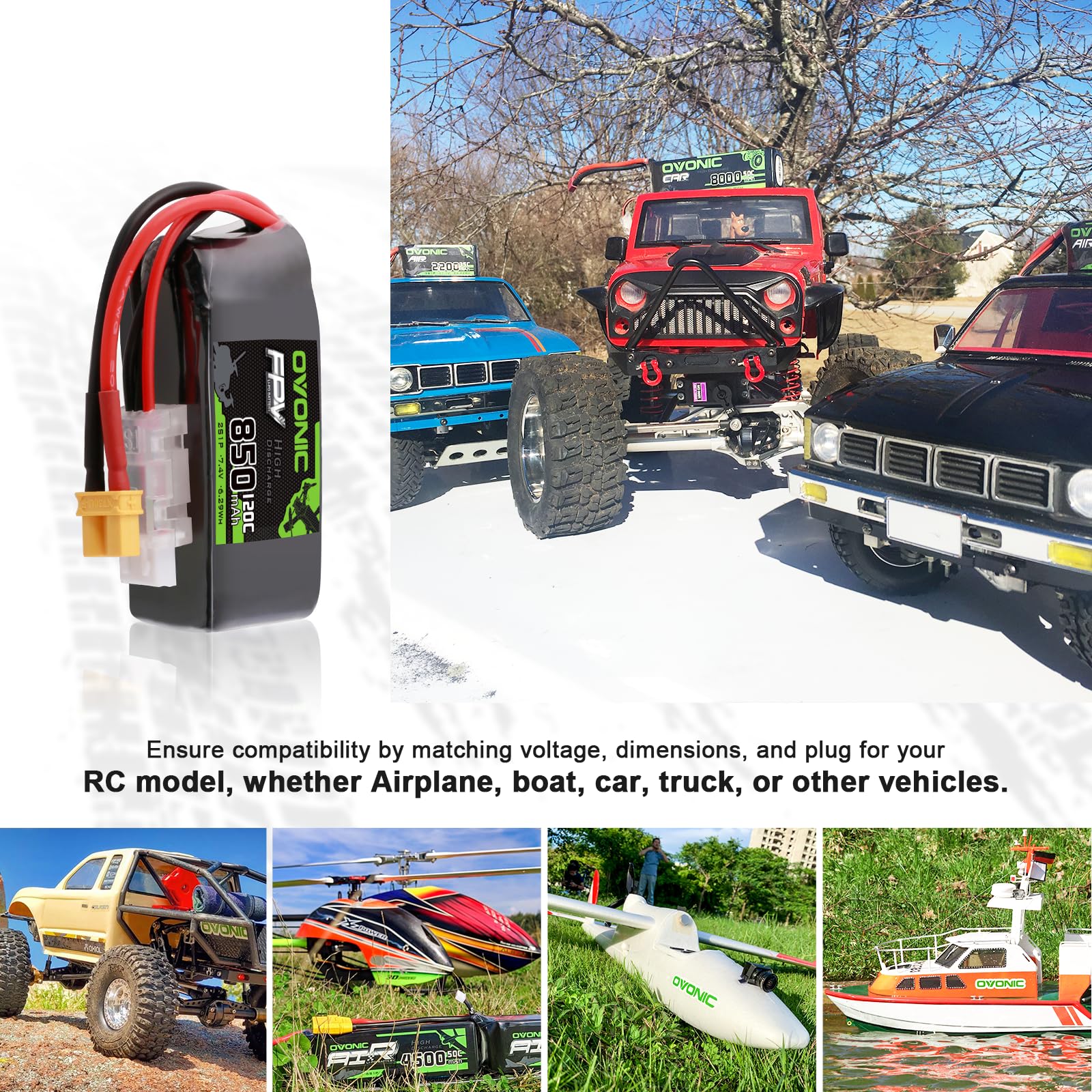 View compareOVONIC 2S 850mAh Lipo Battery 7.4V 120C Battery with XT30 Plug for RC Car Truck RC Vehicles Boat Drone RC Airplane Quadcopter He
