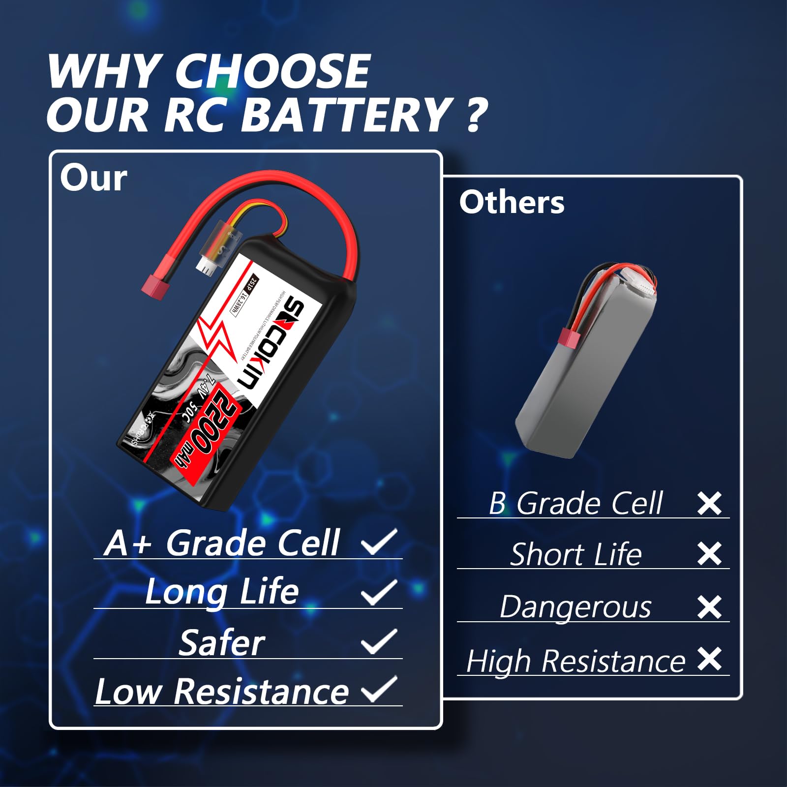 View compareSocokin 2S Lipo Battery 7.4V 50C 2200mAh Batteries with T-Plug Connector Plug Shorty Soft Case Battery for FPV Drone Quadcopter
