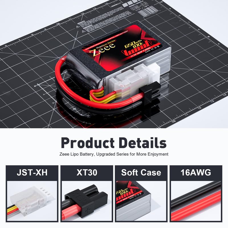 Zeee Premium Series 3S Lipo Battery 650Mah 11.1V 100C With Xt30 Plug For Fpv Racing Drone Quadcopter Helicopter Airplane Rc Boat