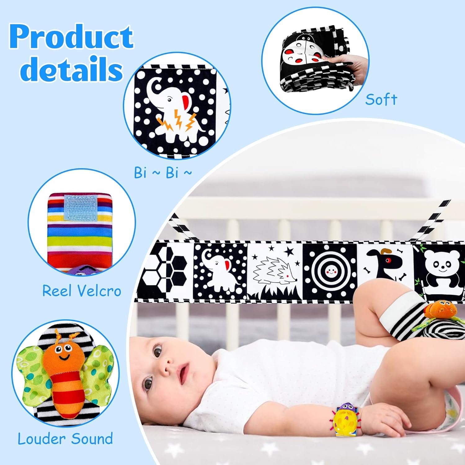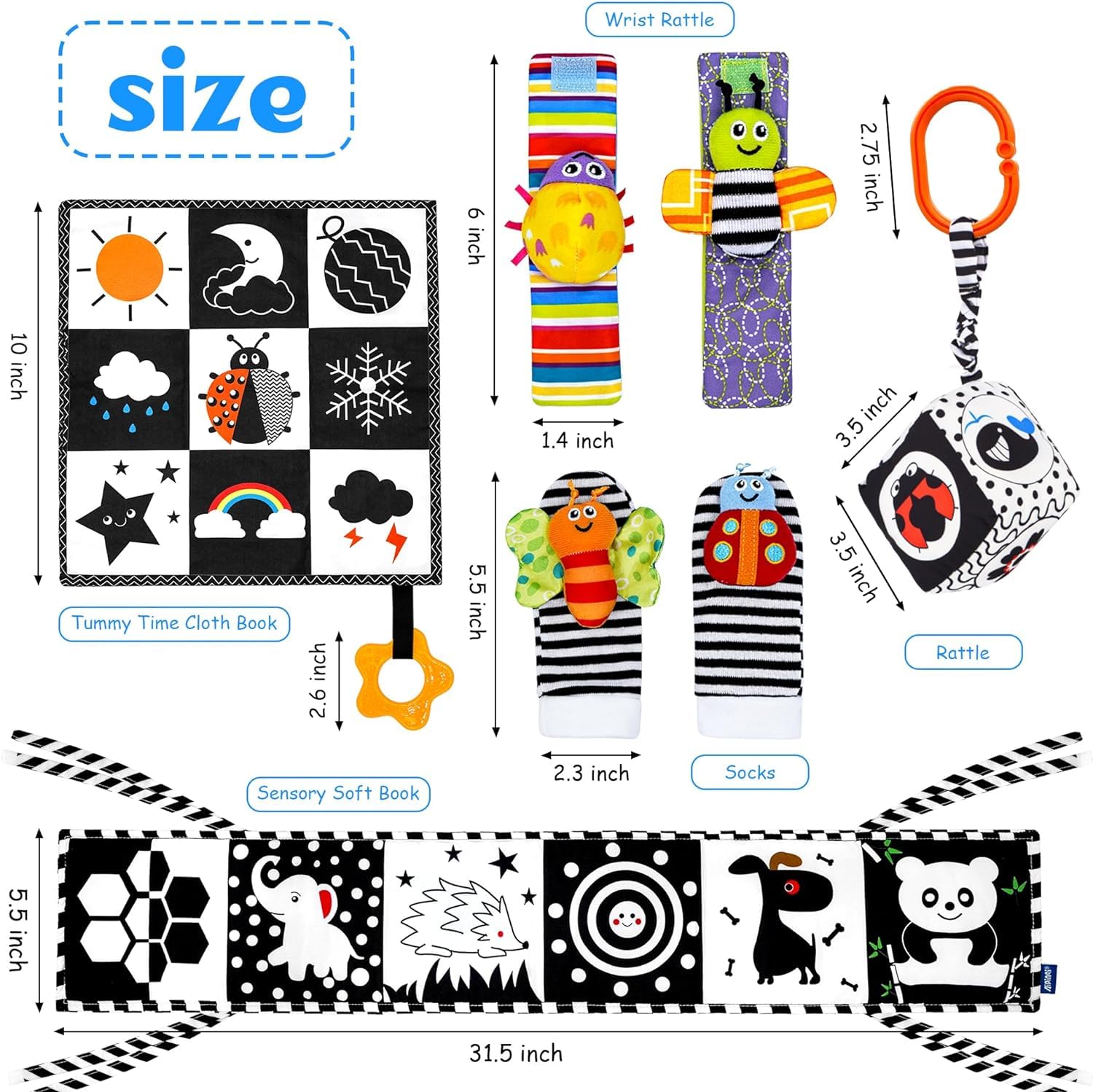 - Q: What makes these toys different from other baby toys on the market? A: This set stands out due to its high contrast design, which stimulates visual development, and its multifunctional features, including rattles and a tummy time mat, that promote sensory exploration and cognitive growth.