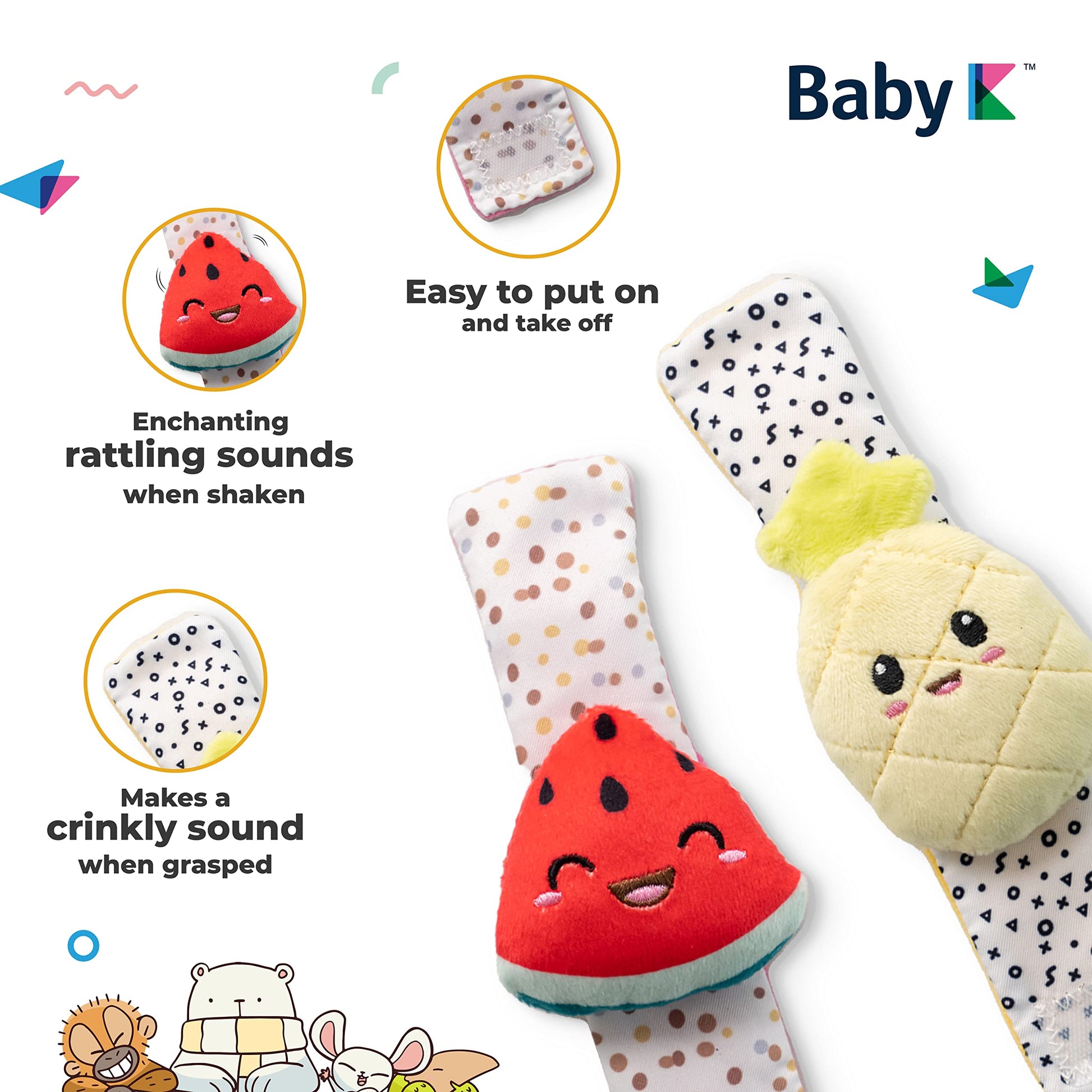 • Q: Are the BABY K Baby Rattle Socks easy to put on and take off? A: Yes, the wrist rattles are ergonomically designed to wrap securely around your baby’s wrist and fasten easily with velcro, making them simple to put on and remove.