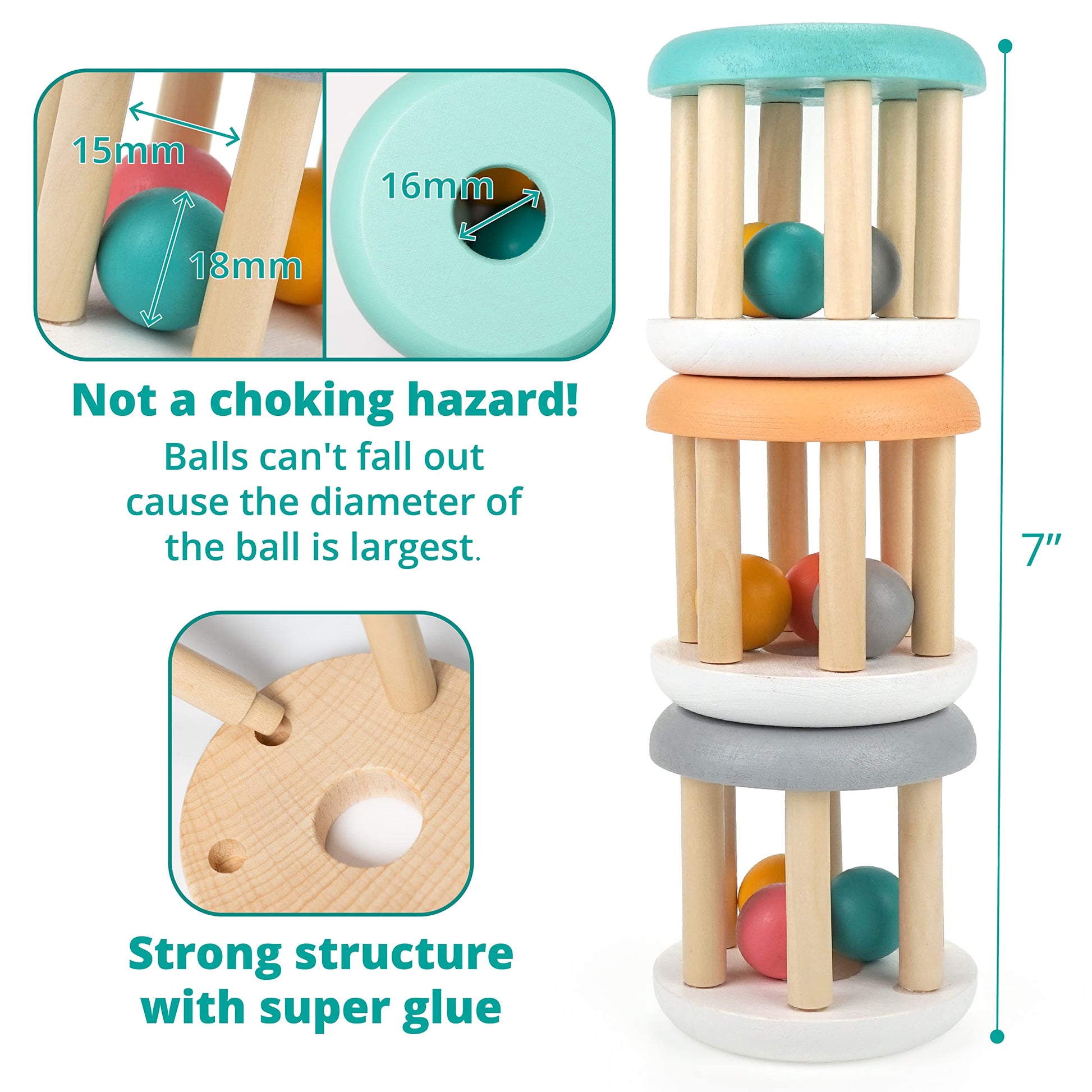 View compareDUCKBOXX XX Montessori Infant Toys, Natural Wood Rolling Rattle Toy for Babies Ages 0m - 2yrs (White Base - 3pcs)
