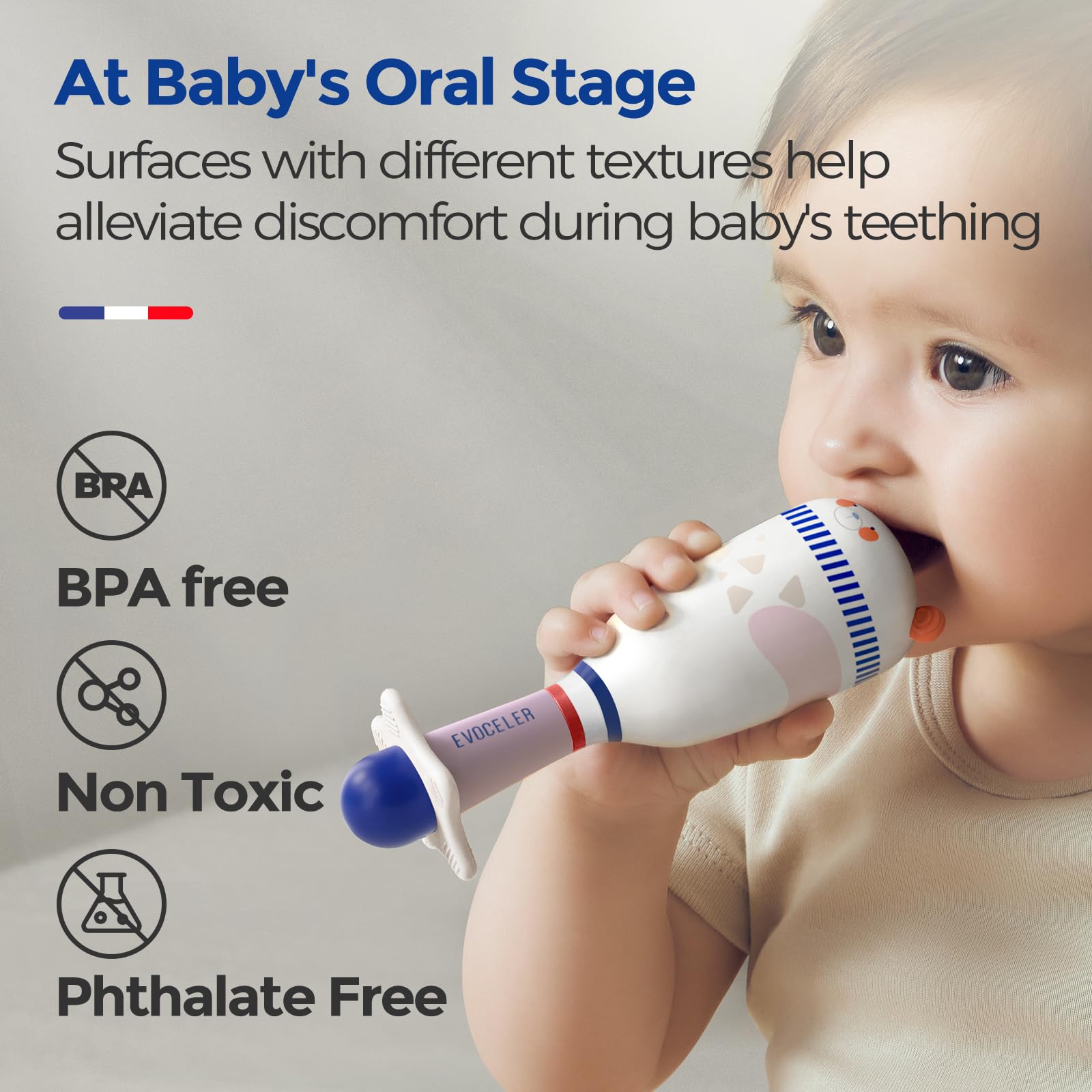 - Q: Are these baby toys safe for teething? A: Yes, the Evoceler Baby Rattles feature textured silicone massage points that are ideal for soothing your baby's gums during teething.