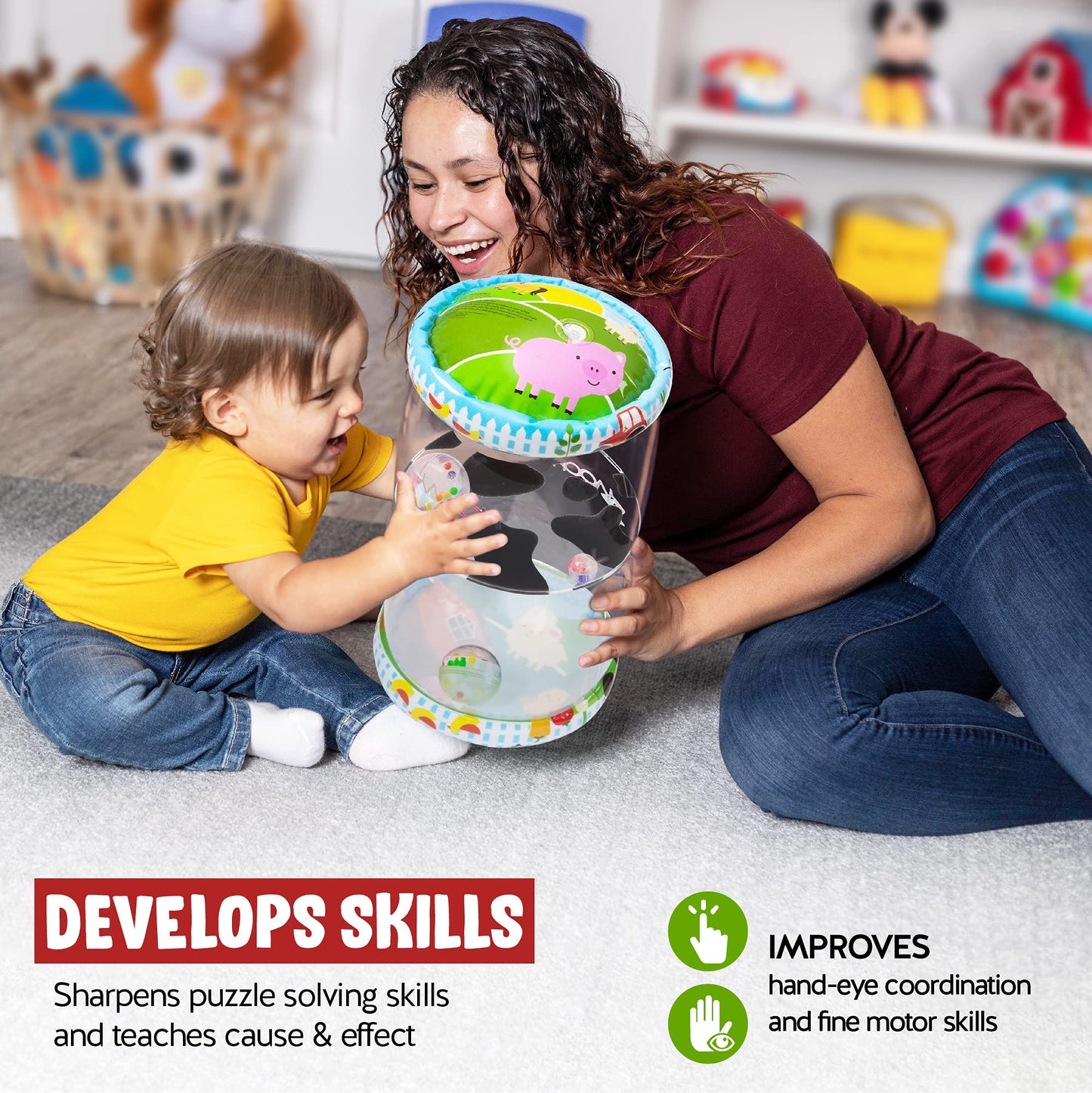 ???Baby Toy?: Barn Friends Inflatable Baby Roller Doubles As A Ball Drop Toy. Hoovy