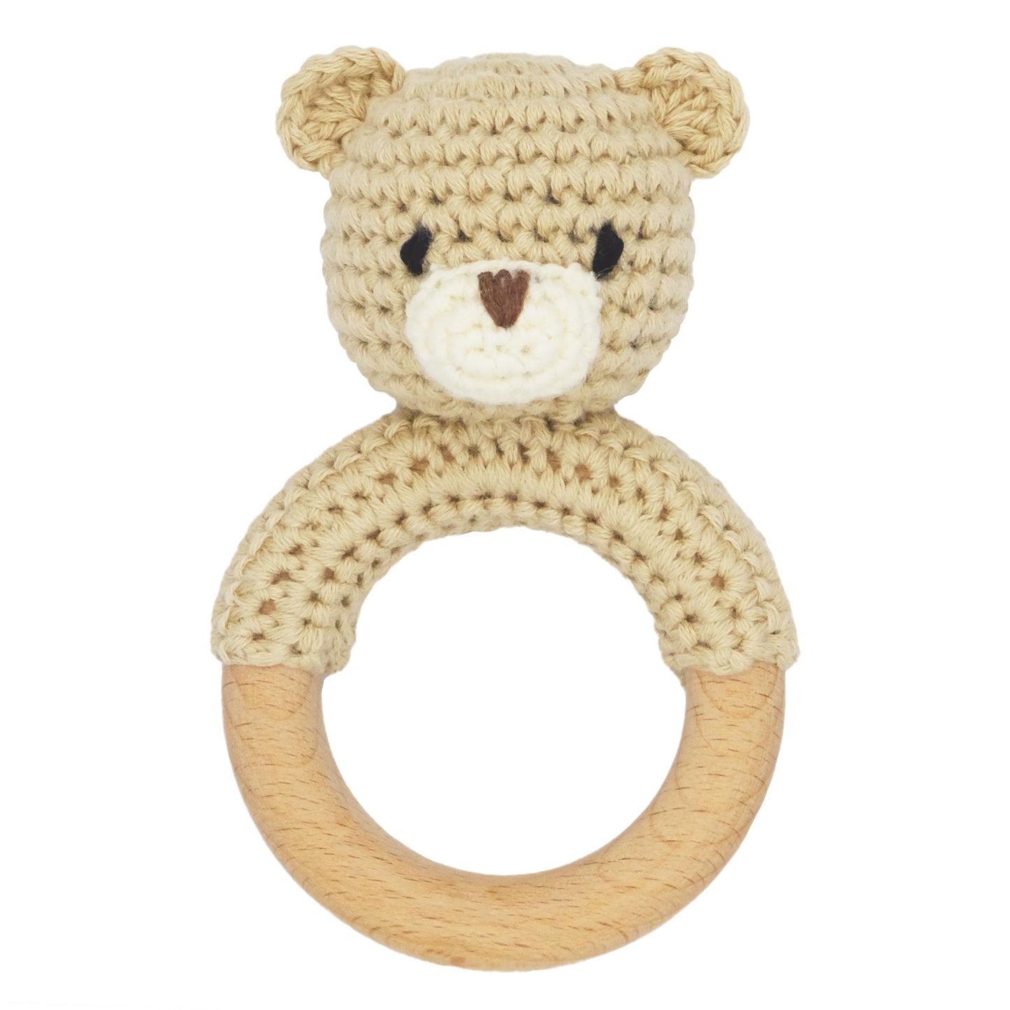 View compareJoliecraft Safari Animals Wooden Baby Rattle Toys Stuffed Crochet Rattle With Teether Ring For Newborn, Beige Bear