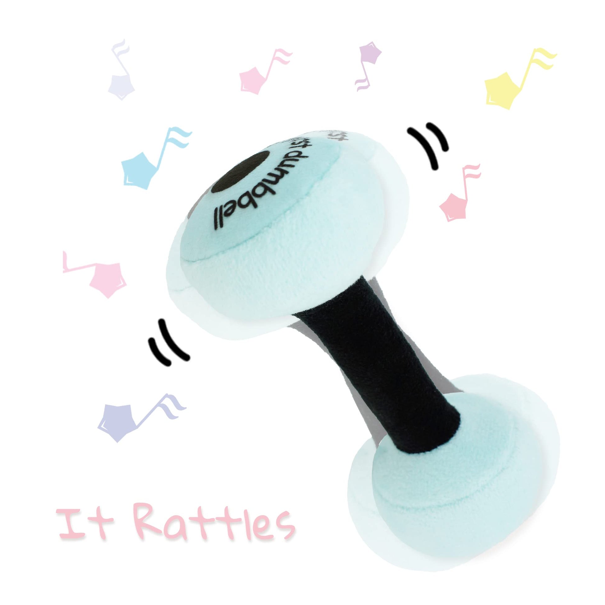 • Q: What are the dimensions of the plush dumbbell rattle? A: The June Garden 6" My First Dumbbell measures 5.9 inches in length and 2.3 inches in width, making it the perfect size for little hands to grip and hold.