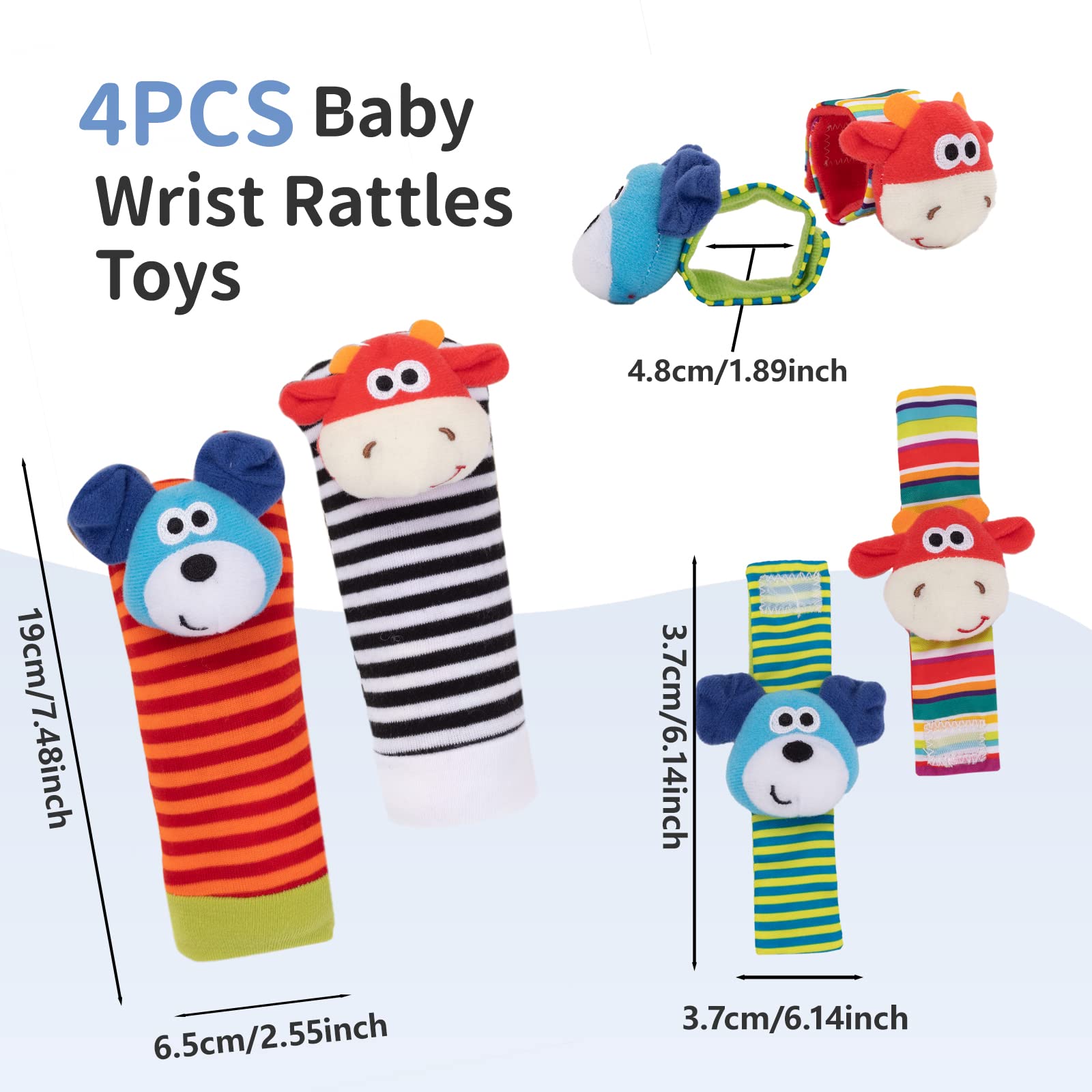 Padonise 4 Pack Baby Wrist Rattles Rattle Socks Set Baby Socks Animals Development Toys For Toddlers 1-3 Early Learning Toys For Babies Infant Sensory Toys Newbron Gift Set Birth Gifts For Baby