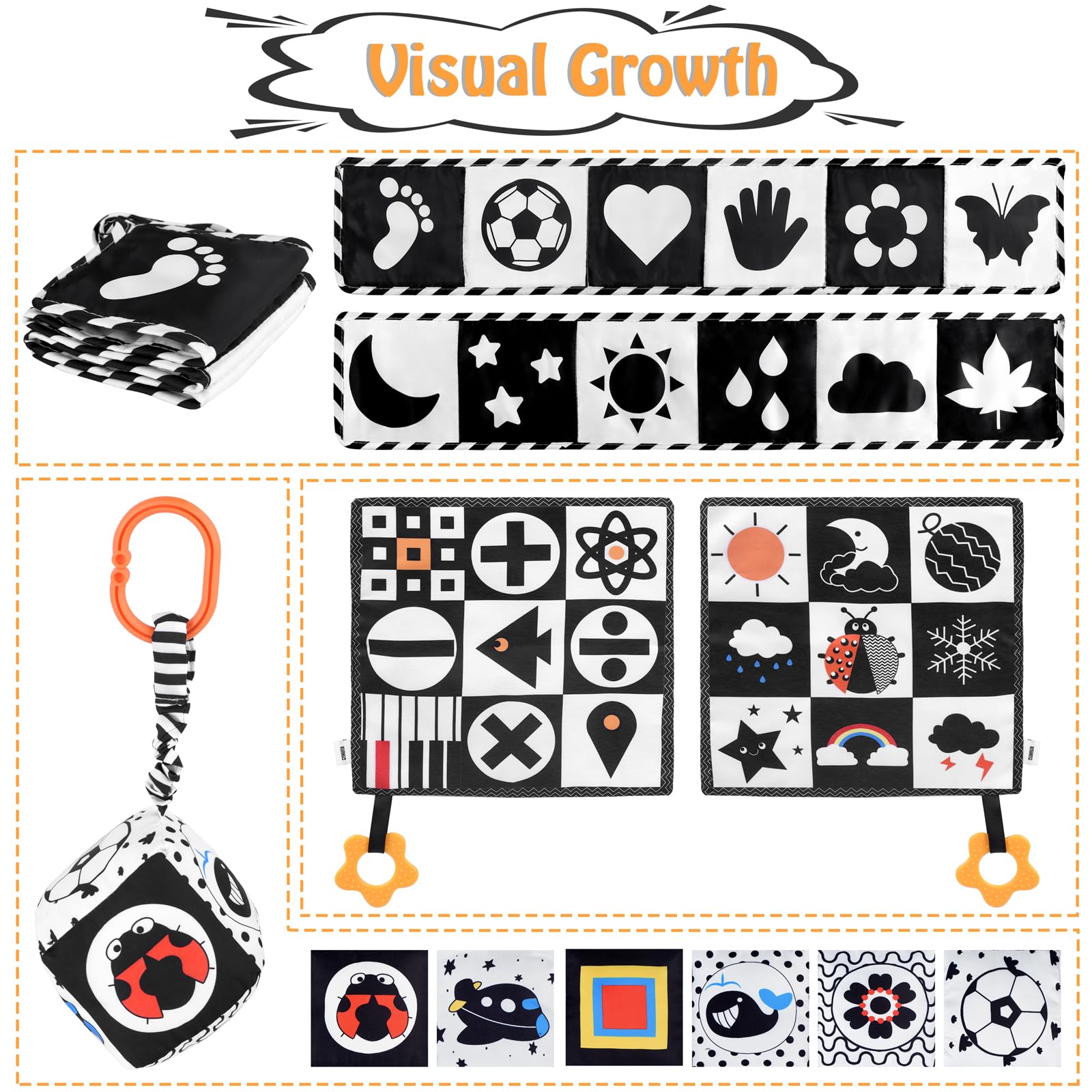 - Q: What makes these toys a good gift for newborns? A: These black and white baby toys are not only visually stimulating but also serve as thoughtful baby shower gifts, being practical for brain development and providing entertainment during the early months.